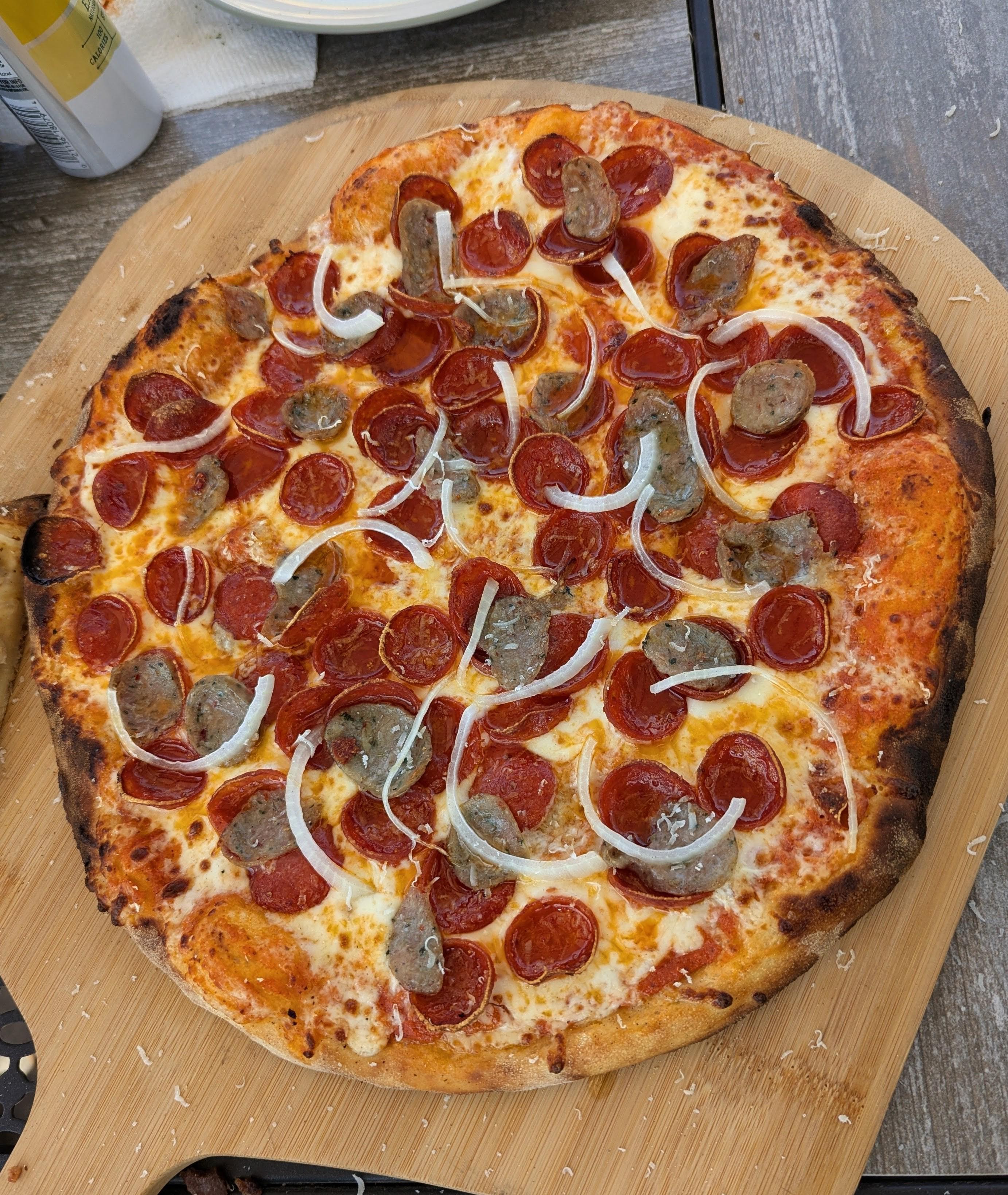48 hour cold ferment dough at 67% hydration out of the Arc XL. Homemade pizza sauce, pepperoni, sausage, white onion, whole milk mozzarella, parmigiano reggiano. by Nuggs4Lyfe outdoor ovenpizzaWrite A CommentYou must be logged in to post a comment.