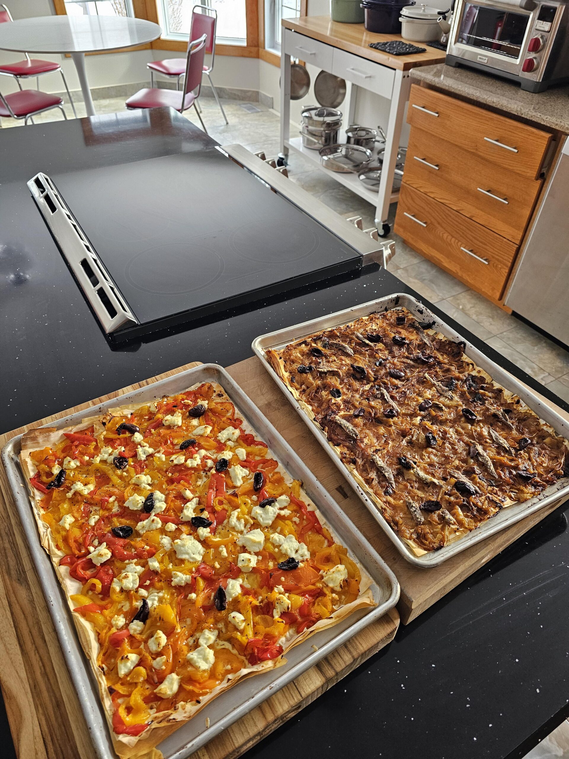 It's cased "pissaladière" and it's from Nice in the south of France. It's basically LOTS of fried onions, with black olives, garlic and anchovies.