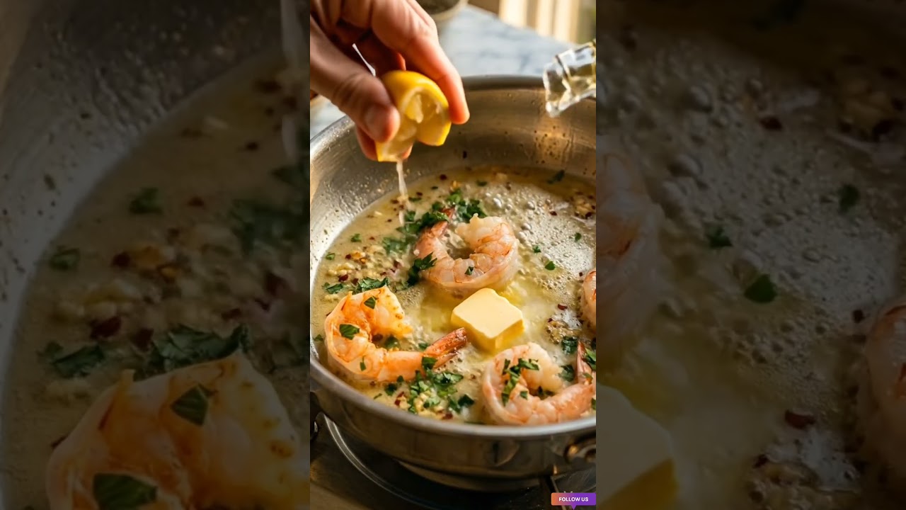 Watch plump shrimp transform into glossy garlic butter perfection โ seared in butter, deglazed with white wine, finished with fresh lemon and parsley. Every sizzle. Every pop. Every golden drop.
