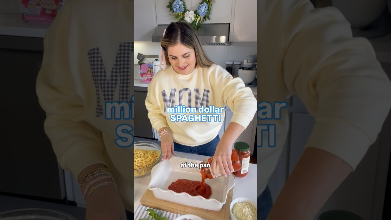 🩷Add remaining spaghetti🩷Top with sausage, more sauce, and mozzarella