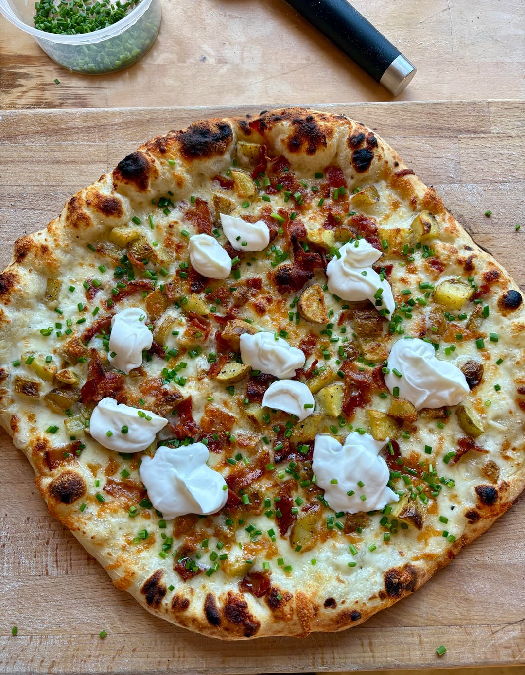 NY style doughBéchamel base, smoked cheddar/low moisture mozzarella, Smokey bacon, roasted potatoes.Finished with fresh chives and sour cream Was a 4/20 creation 👌Packed one up for the neighbours too!by Sad-Tip-8556 outdoor ovenpizzaWrite A CommentYou must be logged in to post a comment.