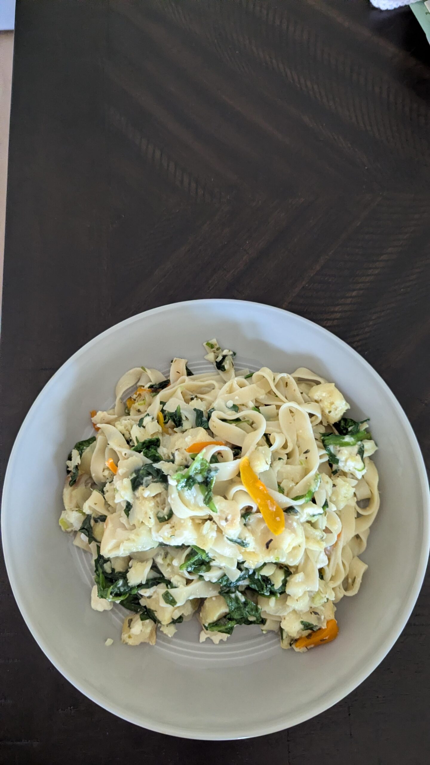 Fresh fettuccine with cod, spring onions, peppers, fresh garlic and fresh spinach. Finished with feta cheese.by Alternative-Fish-303 Homemade DishPastaWrite A CommentYou must be logged in to post a comment.