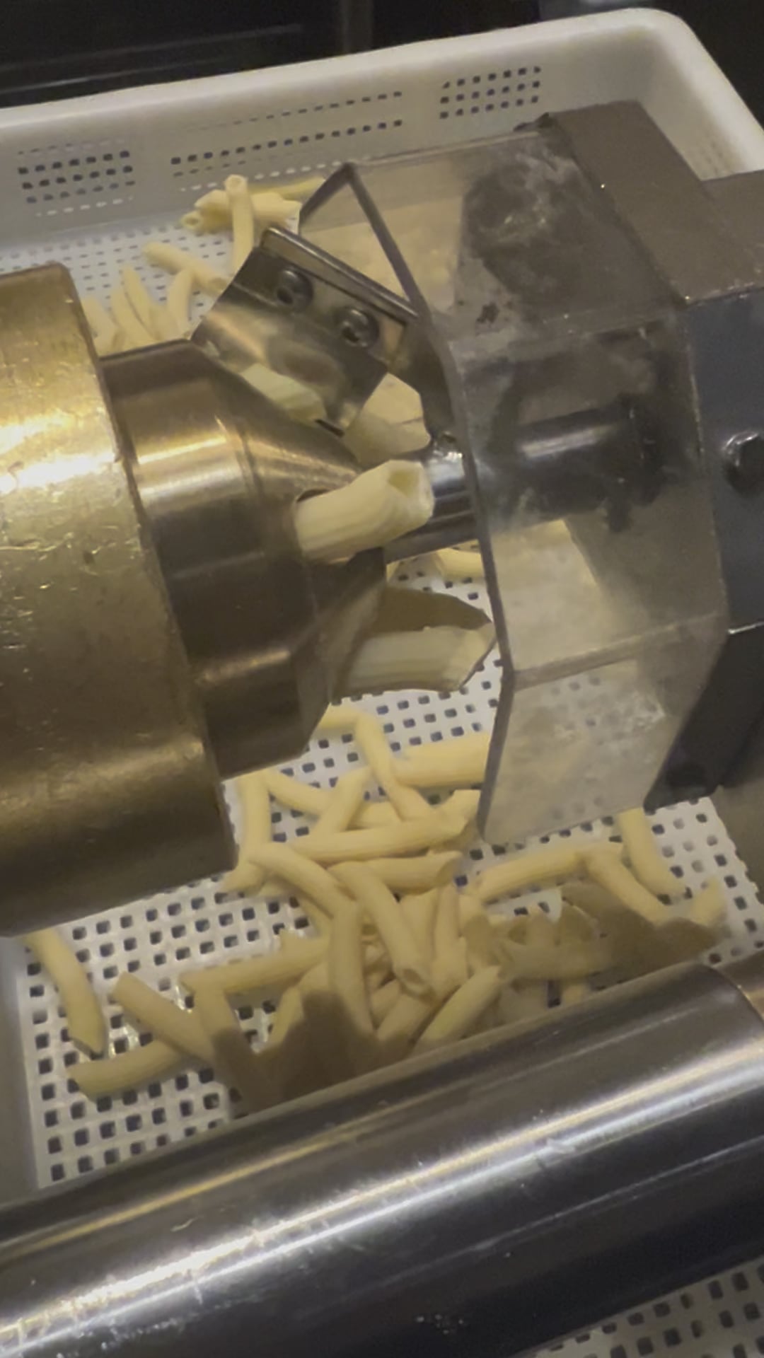 Finally got to make penne the other day. We got a die in at work but since it’s not like the other ones that require the cutter they had to make a special blade for it. plus an adapter for the machine that spins the cutter to make it longer so the blade can reach the die.