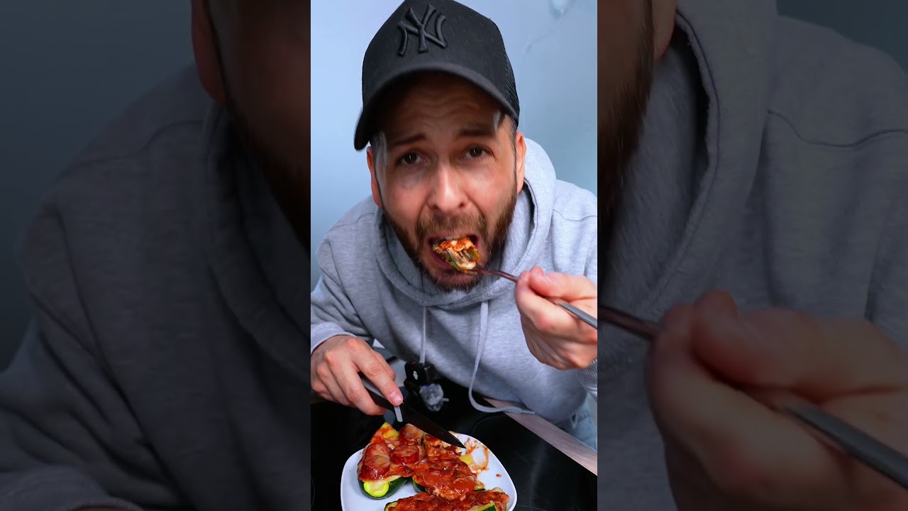 6️⃣ Check: Mit der Gabel seitlich in den Zucchini Rand stechen. Geht sie ohne Widerstand rein, ist sie durch