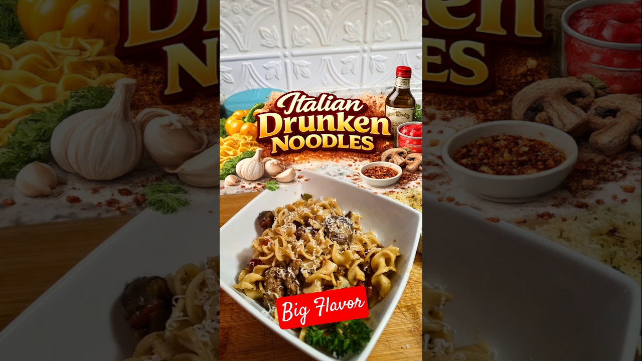 Italian Drunken Noodles made with savory Italian sausage, bell peppers, mushrooms, garlic, and a rich tomato and wine sauce tossed with tender egg noodles. This easy comfort food recipe comes together in under 30 minutes and is packed with bold flavor.