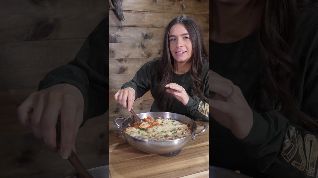 1. Cheesy stuffed shells in a bed a venison sausage meat sauce topped with cheese and baked in the oven for the ultimate one pan meal.