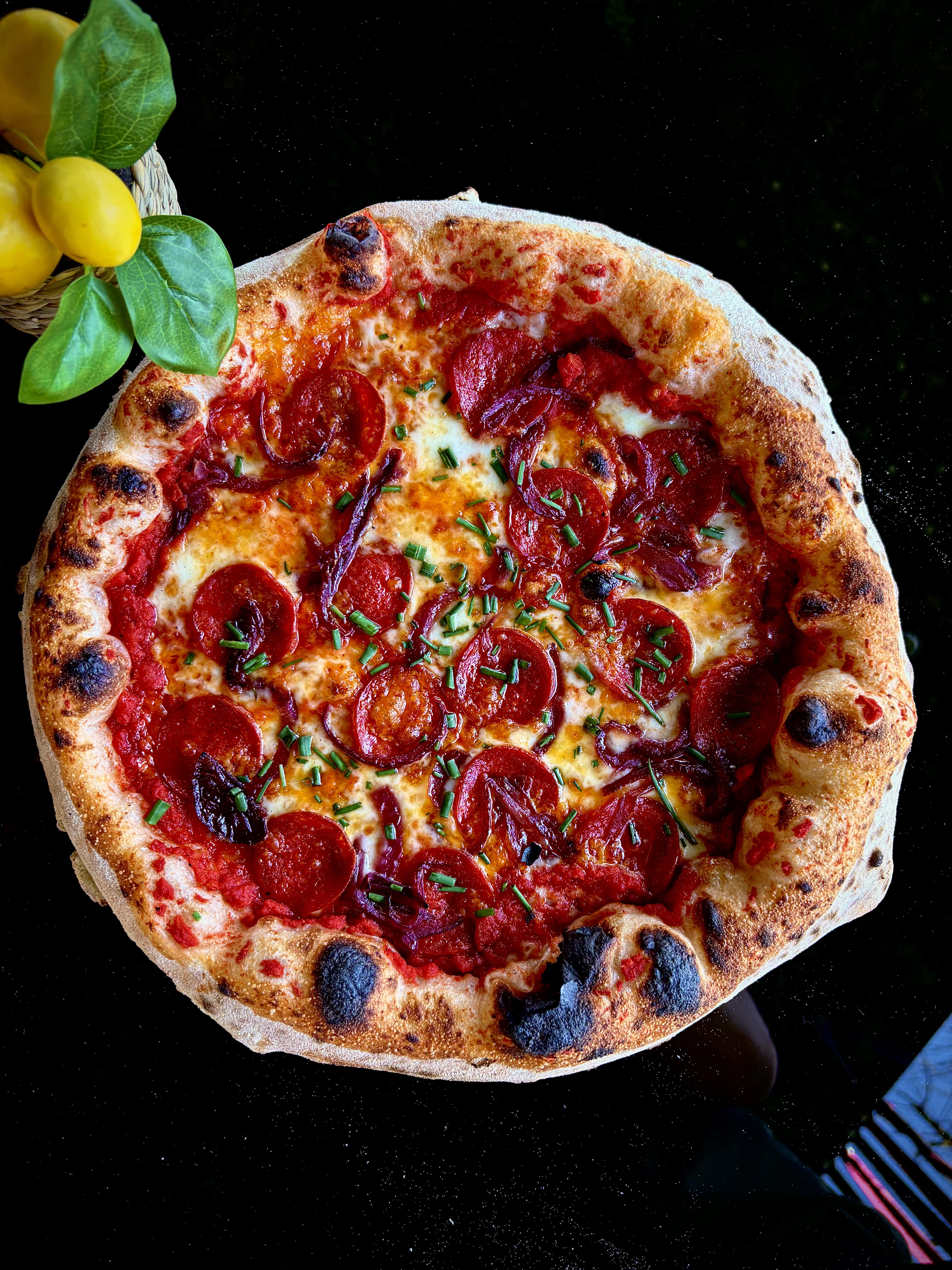 Salame pepperoniMozzarella + cheddarCaramelized onionChives Lemon & honey dressingby Perche_no14 Looking for Feedbackpizza 1 Comment flowerboyinfinity 3 hours ago Swap the chives with an alarming amount of basil and you have my ideal za. Looks amazing. Nice photo too. What dough recipe and oven do you use?Write A CommentYou must be logged in to post a comment.