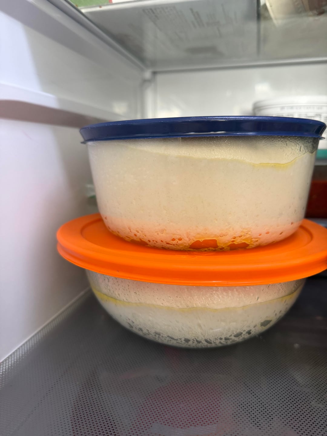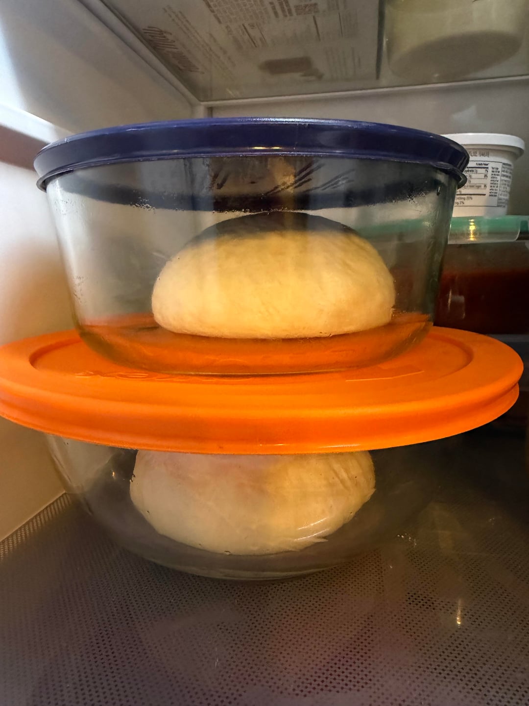 I put 2 dough balls (400g each) into the fridge last night after 2 hour bulk ferment at room temp. This is what my dough balls looked like going in to the fridge and now today. Does this look right or did I mess up? Probably need larger containers?