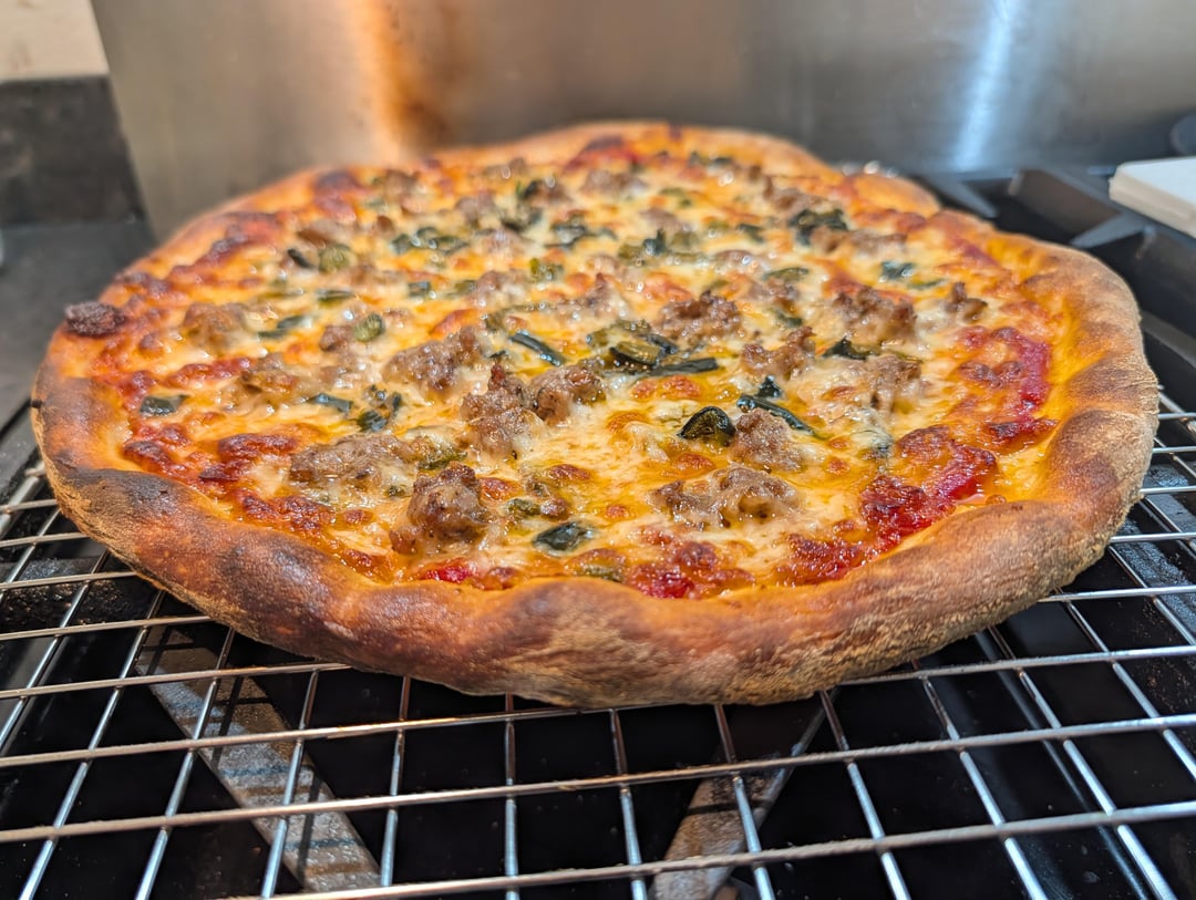 Both baked in a Crosson CPO-160 ( a cheap Chinese 1800 watt , 120 volt oven with ~16" square floor )DSP baked 15 minutes @ 525f , the round one 8 minutes @ 625F by Joe_The_Skeptic indoor pizza ovenpizzaWrite A CommentYou must be logged in to post a comment.