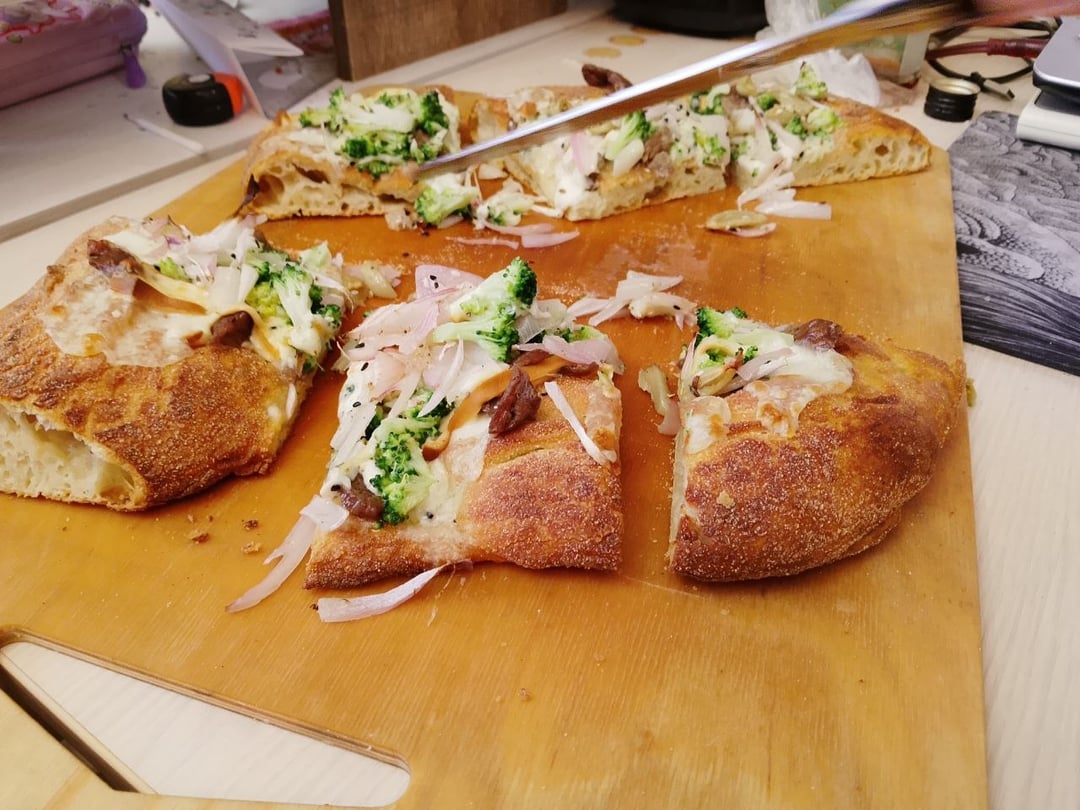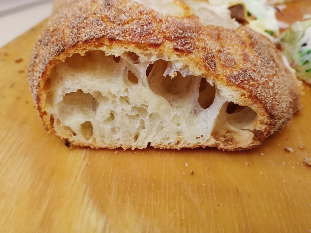 85% hydration. Baked at 220 °C for like