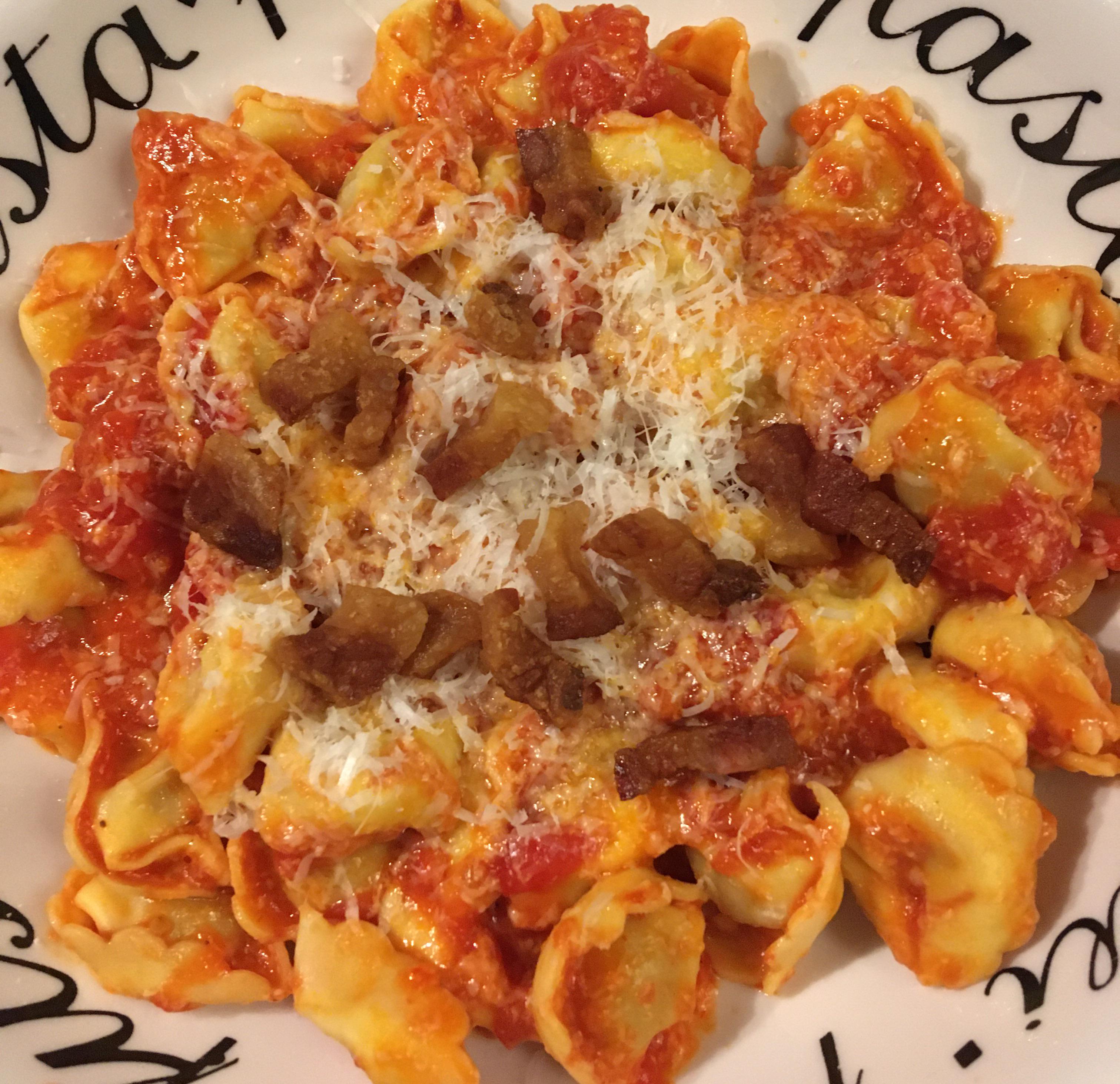 Tortellini with prosciutto crudo, San Marzano tomatoes, generous amount of chili flakes, onion, garlic, black pepper, Pecorino Romano, bit of crispy guanciale on top.by Jim_Clark969 homemadeitalian foodItalian RecipesWrite A CommentYou must be logged in to post a comment.