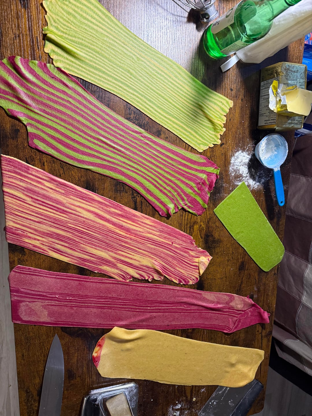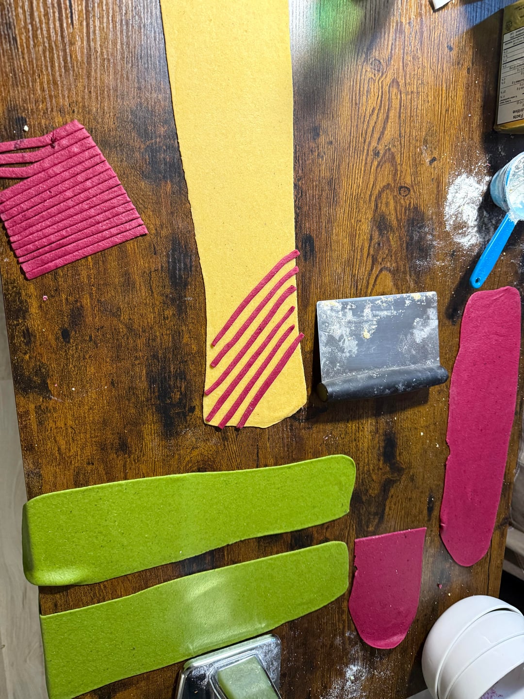 I wanted to recreate the cool designs of yellow sheets of pasta stripes of colors, but its harder than I thought…