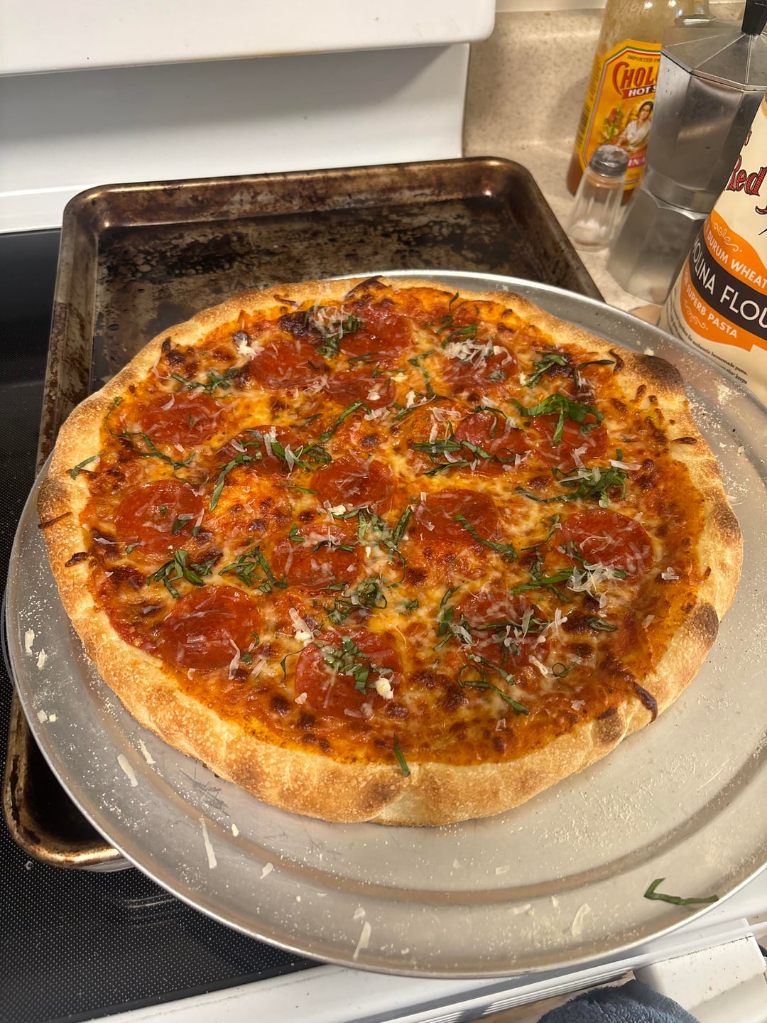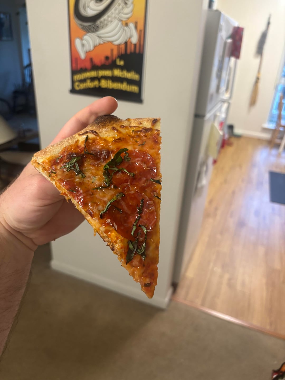 Other than King Arthur bread flour and SAF yeast didn’t do anything too fancy (by this sub’s standards at least!). Only let it sit in the fridge for about 20 hours cuz I was too lazy to make the dough any earlier. Cooked on a cast iron stone my brother gave me at 550 cuz that’s as hot as the oven in my apartment gets. I finished with basil, parm, and just a little bit of honey. Tasted good after a long week.