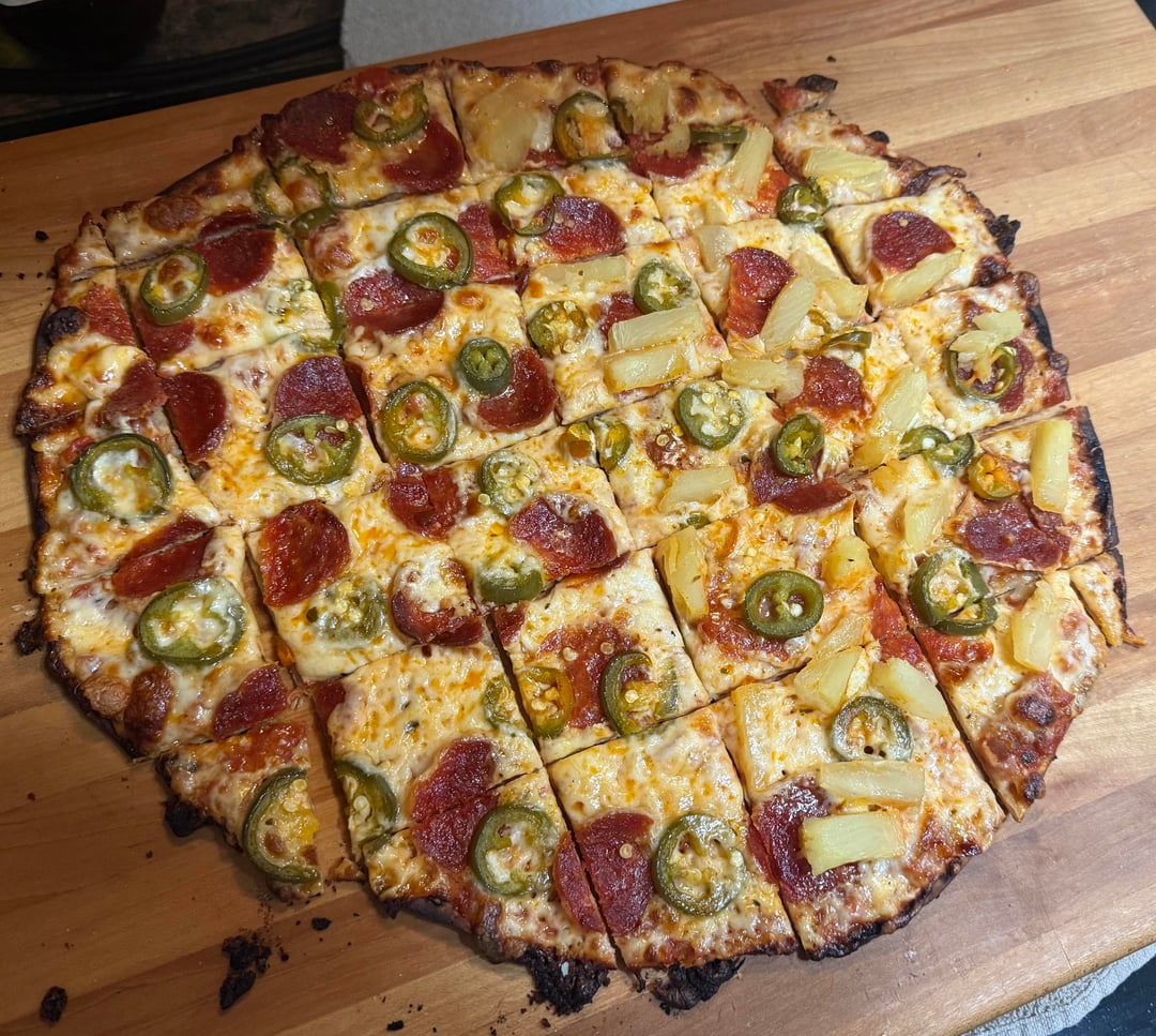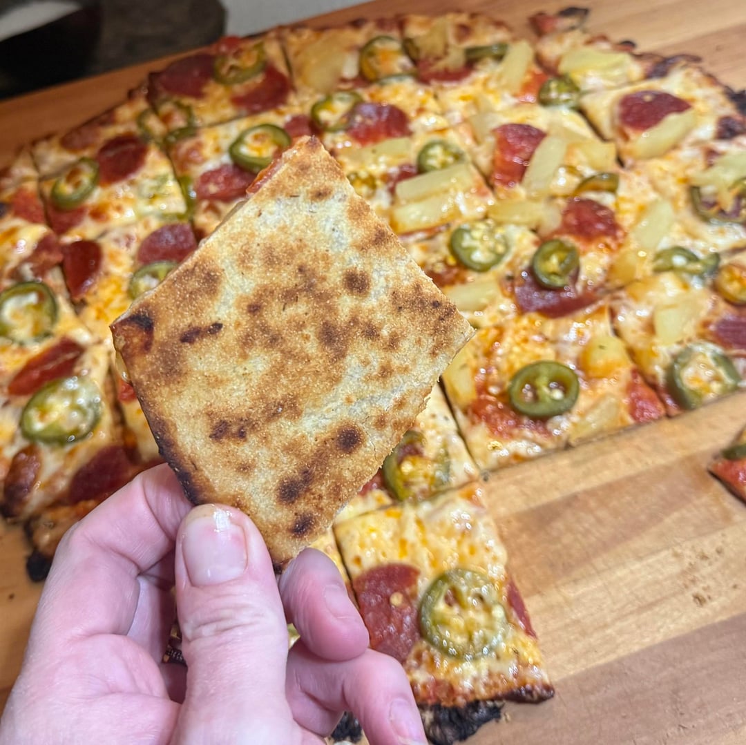 pinkwooper 2 hours ago Followed Kenji’s recipe ([archived link to get around paywall](https://web.archive.org/web/20251115033653/https://cooking.nytimes.com/recipes/1024060-chicago-thin-crust-tavern-style-pizza-dough)). I cooked it in a Weber grill on a stone since I haven’t taken out the Ooni for spring yet. It was devoured and I can’t wait to try it again in a pizza oven! 😋Don’t judge the half pineapple, I’m one of those freaks haha