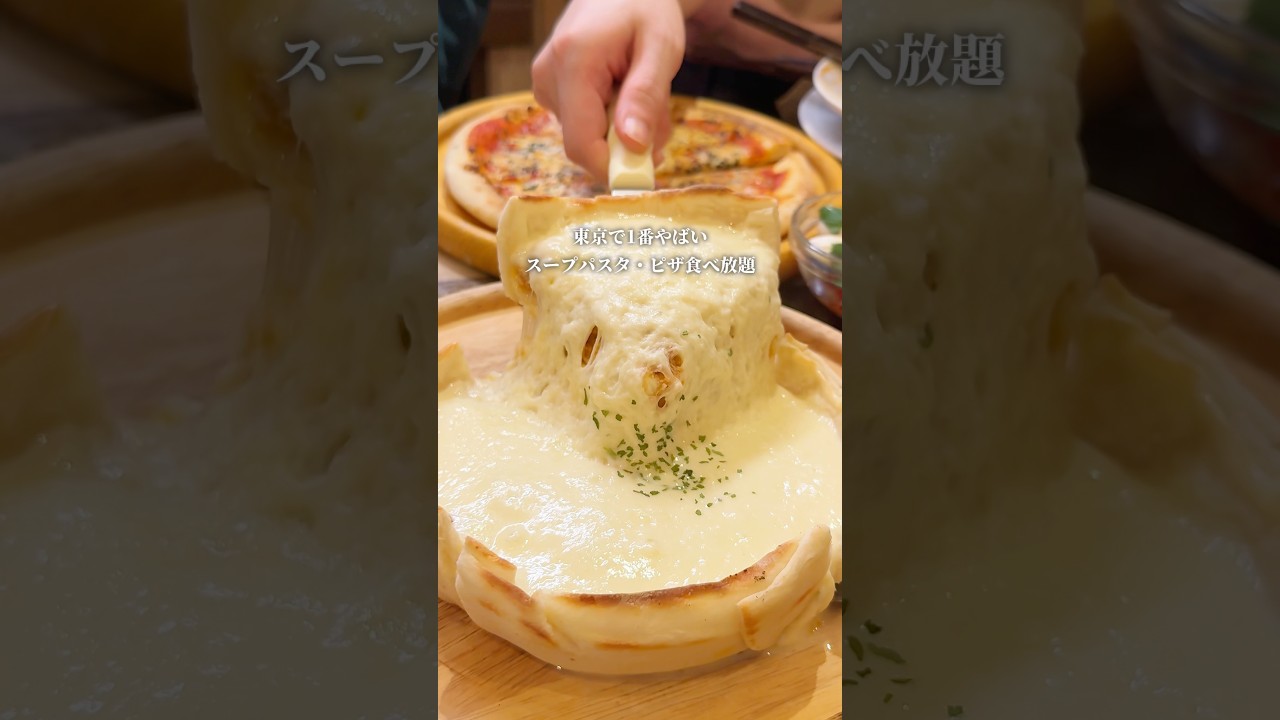 渋谷のスープパスタ・ピザ食べ放題が明らかにおかしい…8種類の中毒系パスタや5種類の定番ピザ、このラインナップで衝撃の1580円!まさかの千円台。シカゴピザ3種類は+400円で食べ放題で、チーズが本当ヤバすぎた😂みんなでシェアするのがおすすめ。