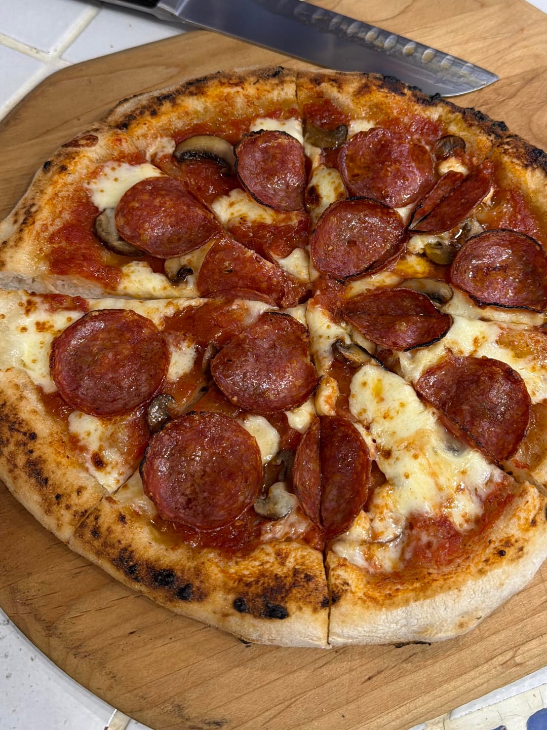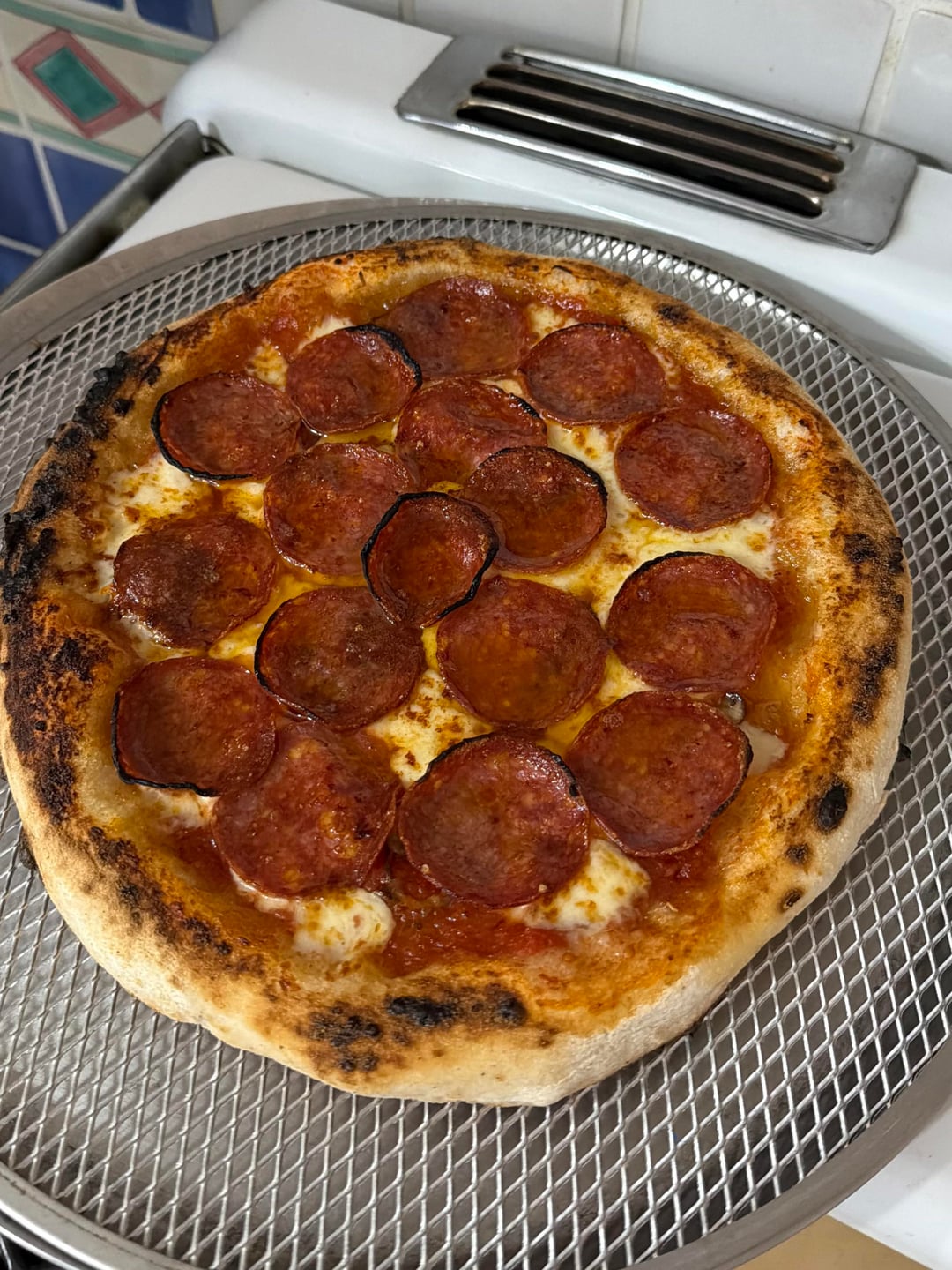 800 grams total recipe. 2 – 400 grams dough balls. 24 hour cold ferment. Baked in a Gozney ArcXL at about 900°f.