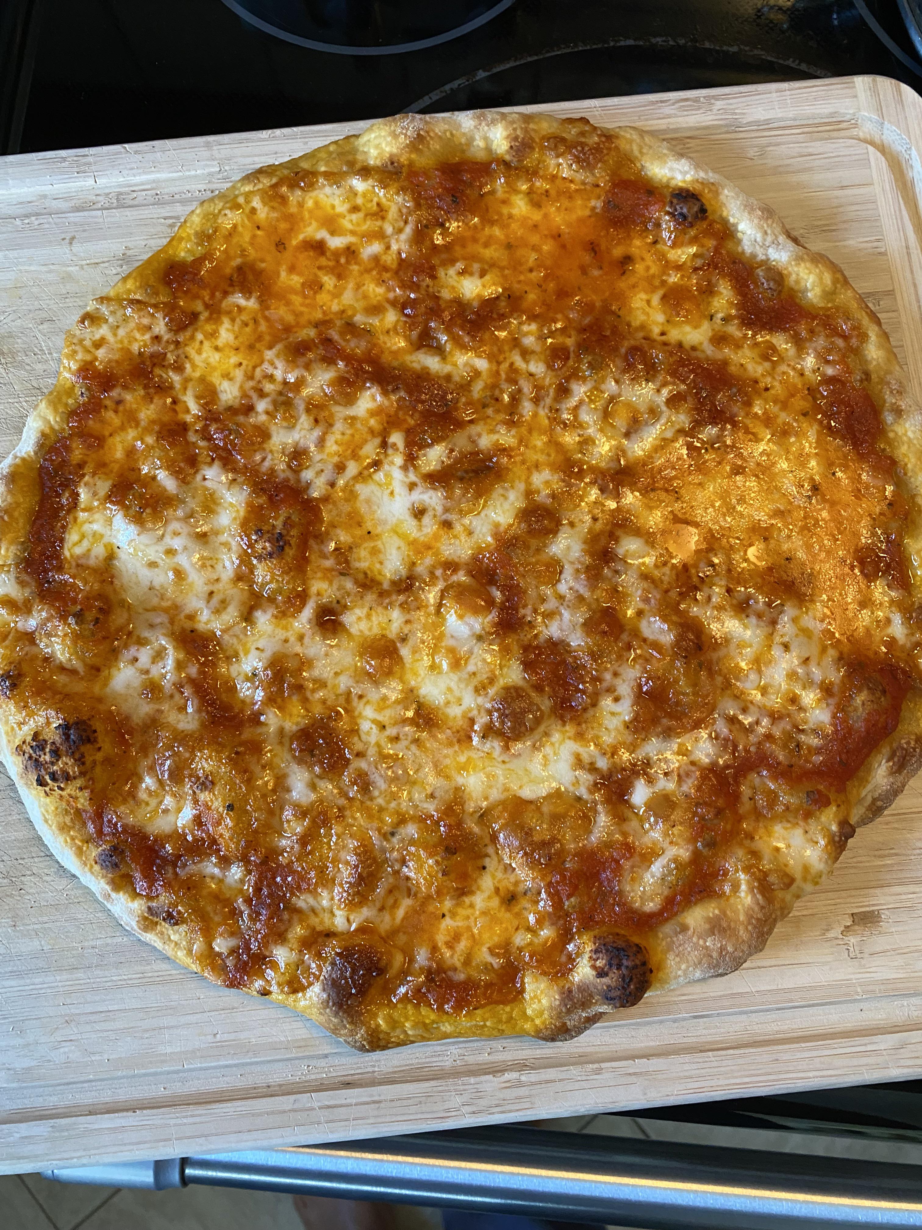 bullrun001 2 hours ago Wasn’t intentional just didn’t have time, first time I ever left dough in fridge for that long. Dough had a nice light sour dough taste, nice crunchy bottom, first time blending a little Gouda with the Mozz and pecorino, delicious!