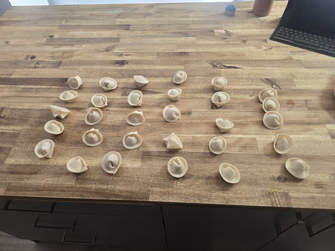 This was made using the left over chicken I used to make the stock. Not all made from scratch I bought thw wrappers this time for a time saver. Yes that is a sir mixa-lot music video playing on the tablet.