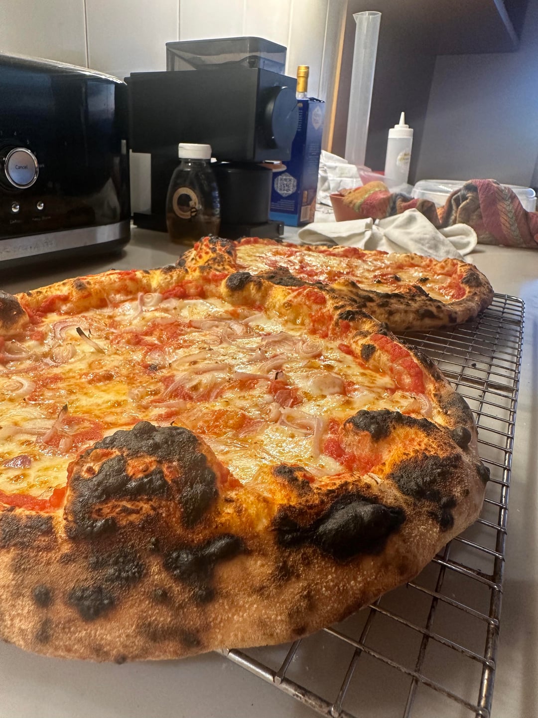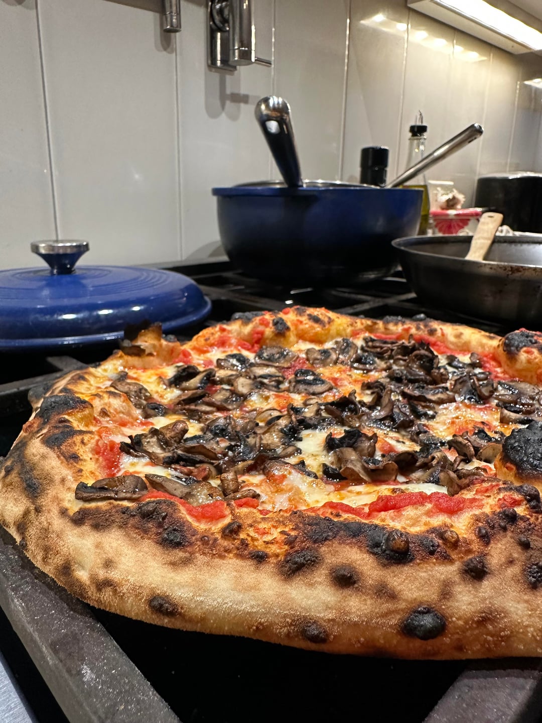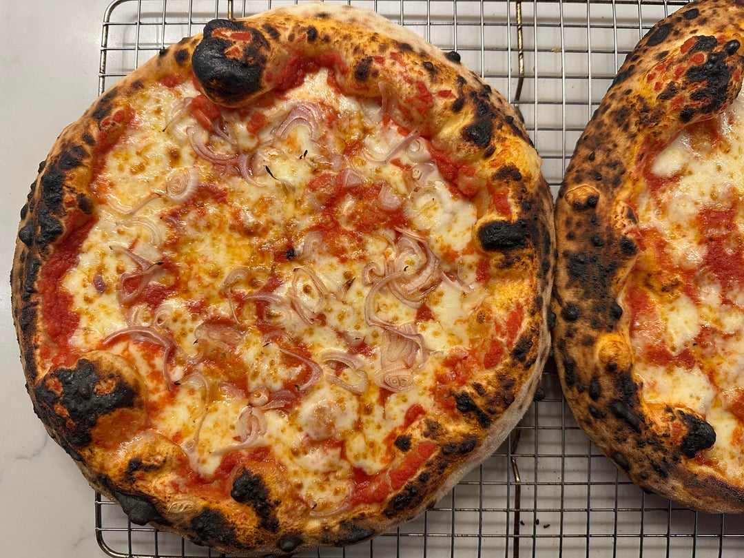 Julian Sisofo poolish recipe (https://juliansisofo.com/blog/poolishpizza) with bread flour subbed for the poolish only and 00 for the rest, four folds instead of two, 15g of salt instead of 12.