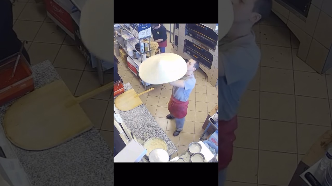 It's good for theatrics, but as a fellow pizza artisan, tossing the dough causes it to be thin and lose cell structure in the center, which makes the pizza go limp at the tip.