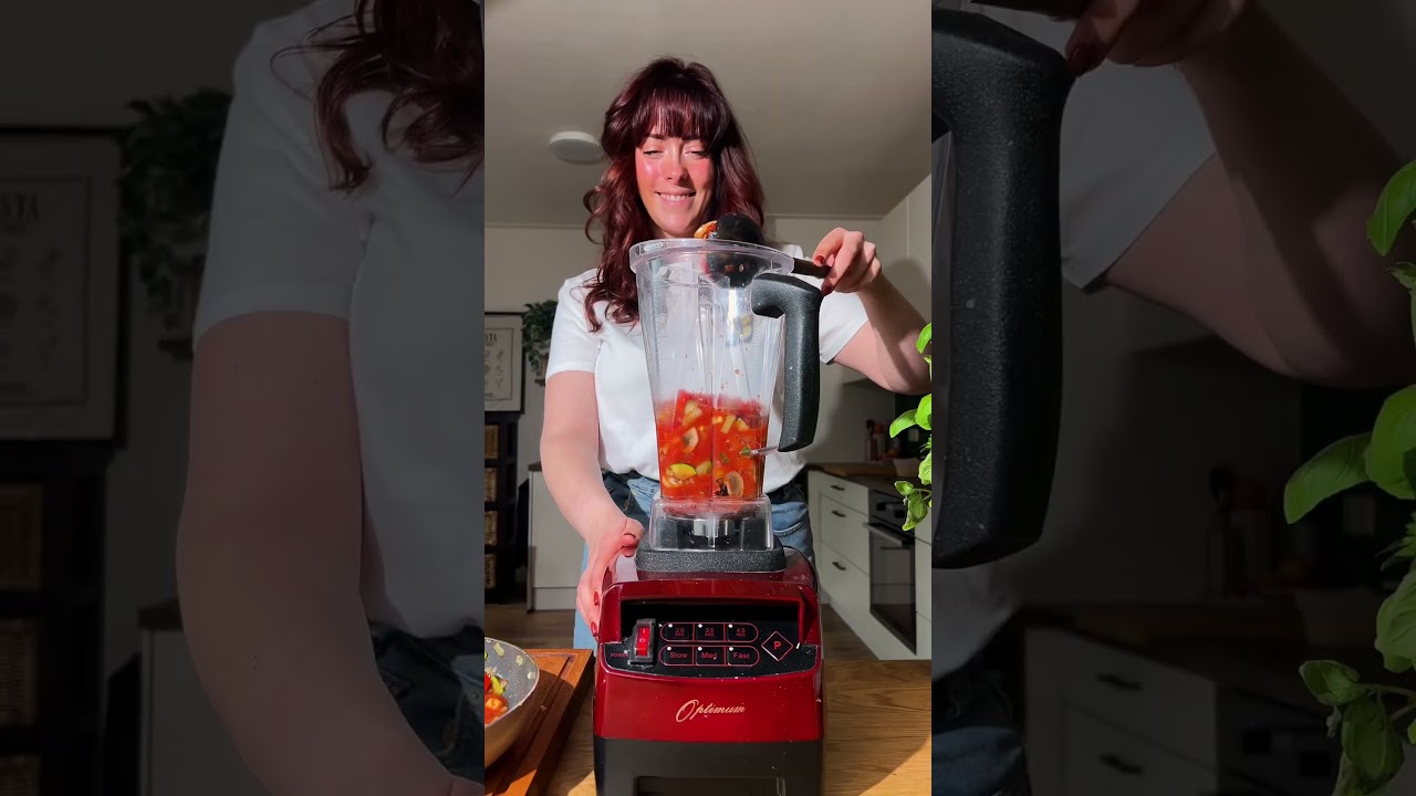 4. Mix de saus met behulp van een staafmixer of blender tot een gladde saus. Voeg daarna het kipgehakt en de ongekookte fusilli toe.
