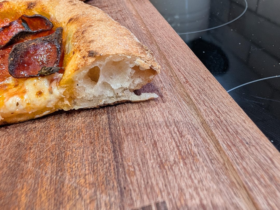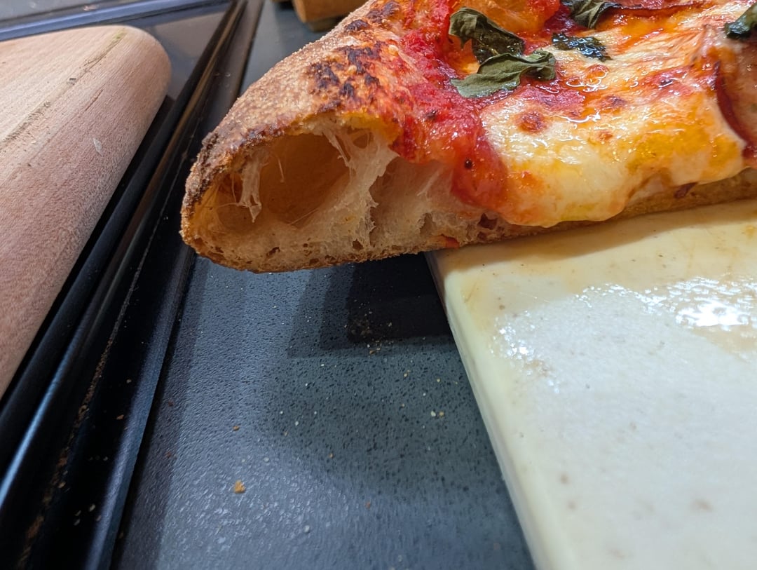 I've been chasing this result for over 2 years now and I can't even contain my excitement. This has been a work in progress and I finally dialed in a recipe that just plain worked! The dough was SO easy to work with and it stretched, launched, and cooked amazingly. Here is the dough: