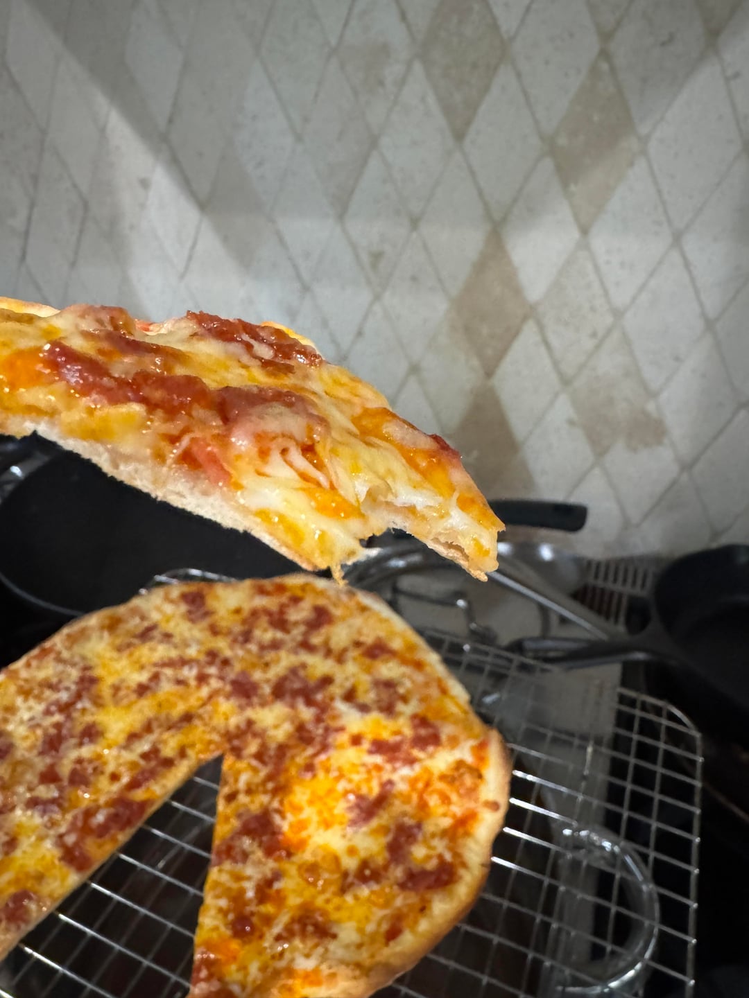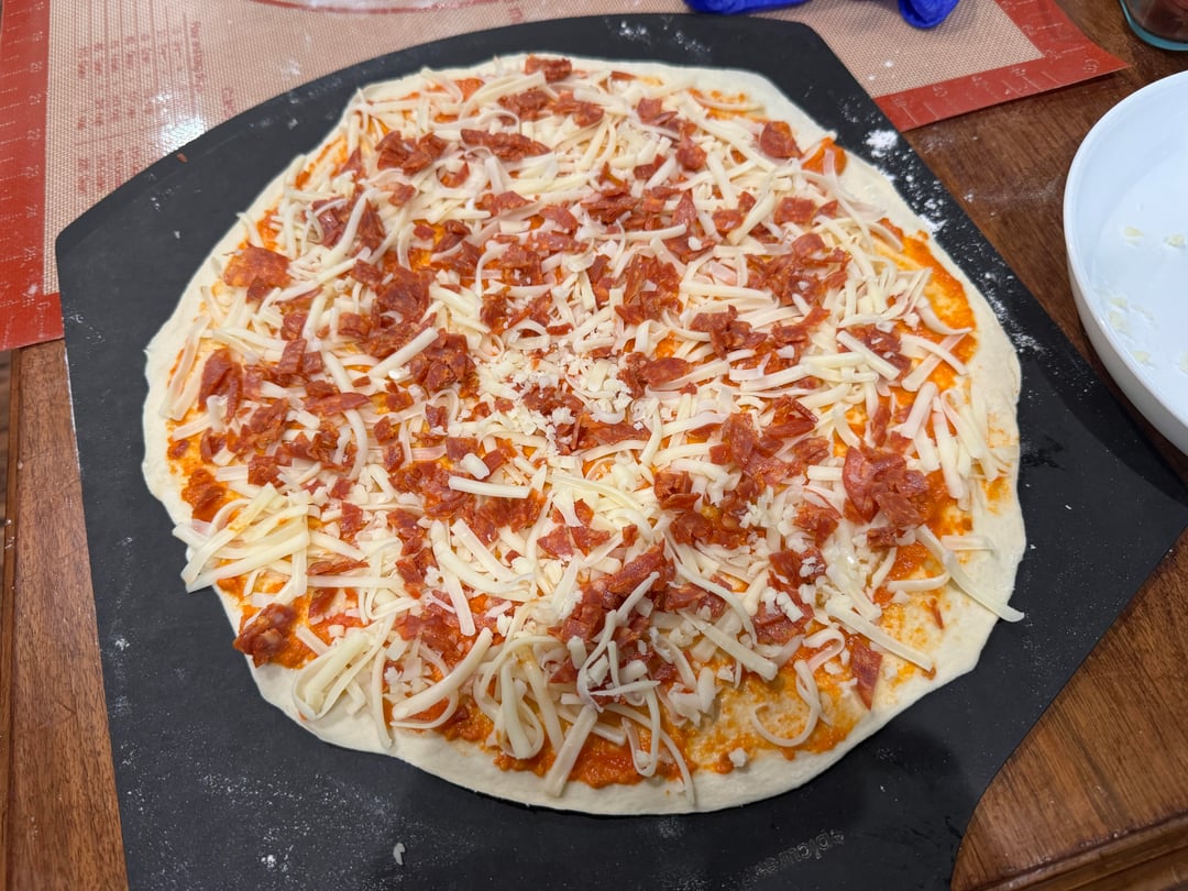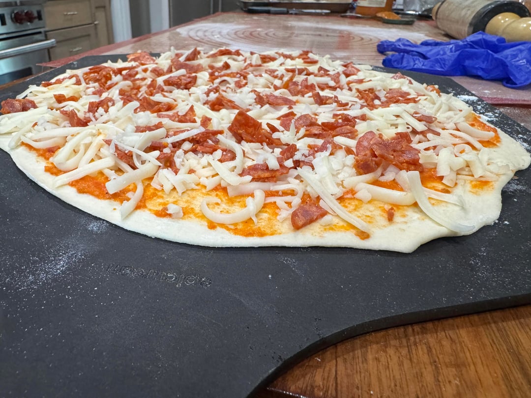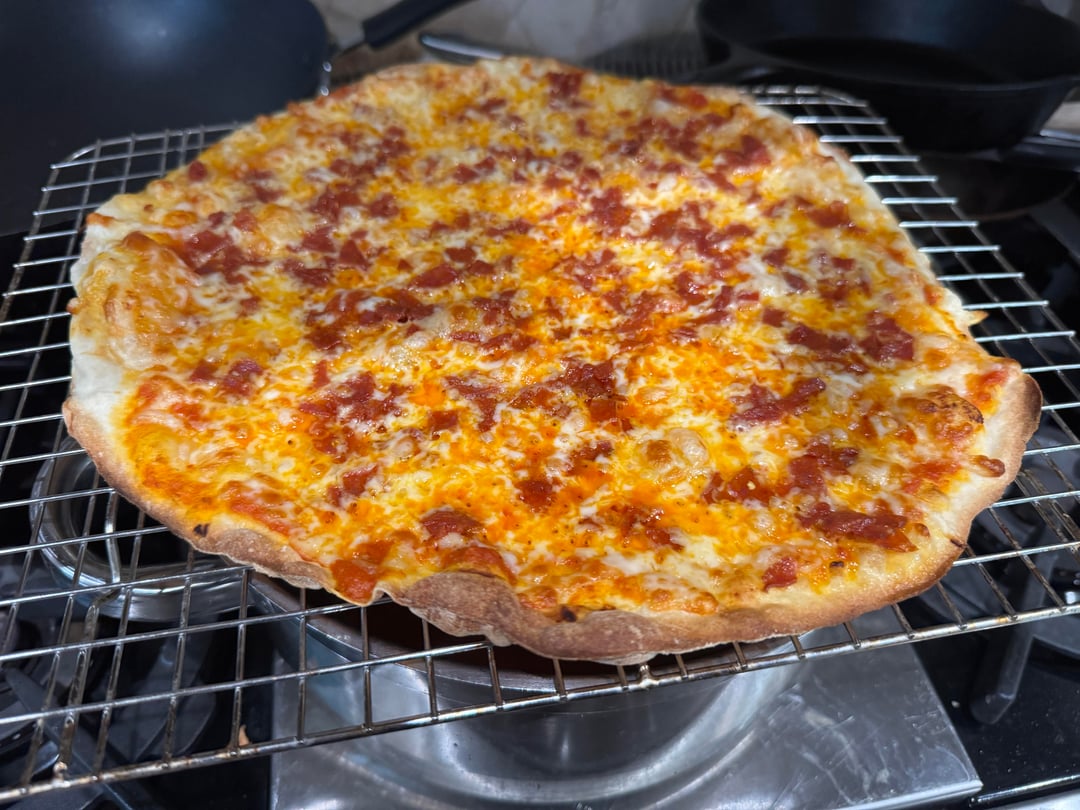 Here is my same day dough (made it at 1pm and baked pizzas at 6pm). Used a rolling pin to evenly roll them thin. Cooked on a 1/2 inch thick pizza steel that was pre-heated to the max possible temp (my oven goes to 500F but I also use broil just before launching to get the steel to about 700F+).