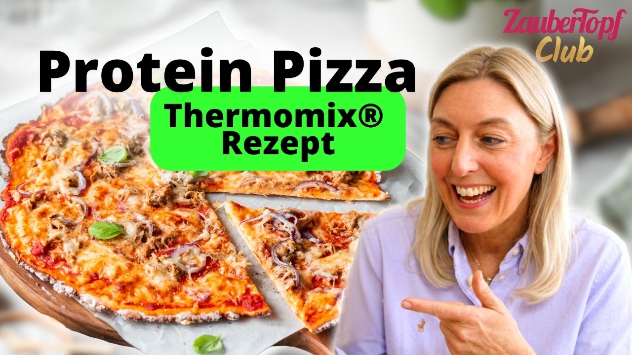 Diese schnelle Thunfisch-Proteinpizza aus dem Thermomix® macht richtig satt, liefert wertvolles Eiweiß und schmeckt der ganzen Familie! Das Beste: Der Teig kommt ganz ohne Hefe aus – also kein langes Warten mehr! 😍