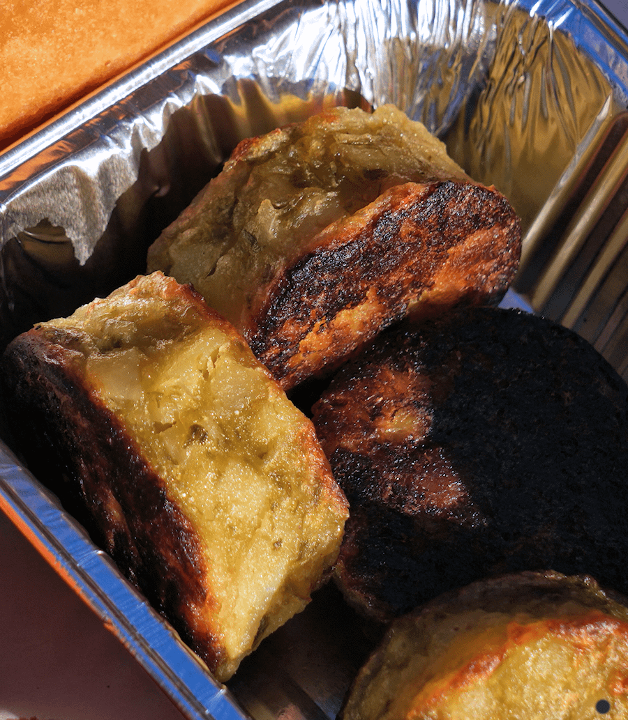 *Gateau di patate*, usually comes with ham and cheese but I can imagine other variations (with asparagus, for example)