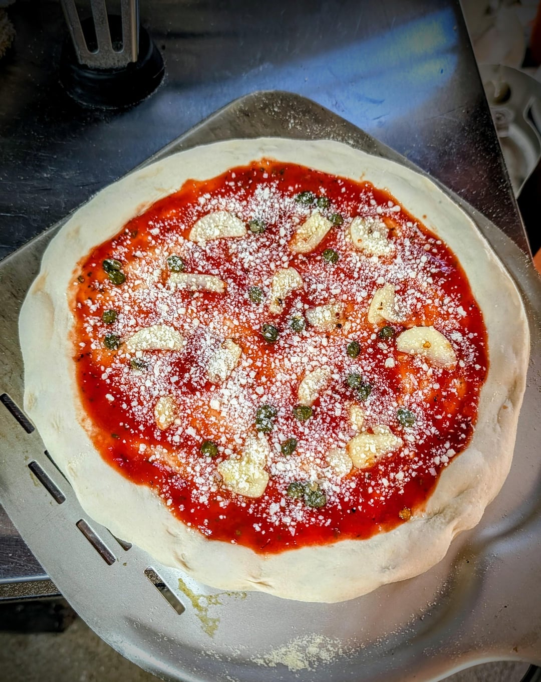 72hr cold fermented poolish dough.Mutti passata, capers, very thinly sliced garlic, calabrian hot pepper oil, locatelli pecorino Romano.800f Gozney Roccbox.275g, 30cm pizza.Enjoy!by skylinetechreviews80 Looking for FeedbackpizzaWrite A CommentYou must be logged in to post a comment.