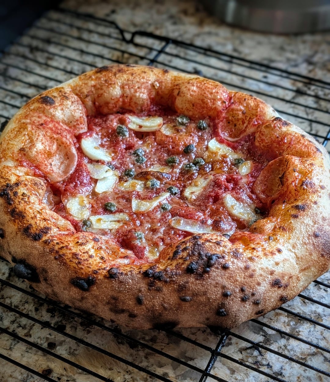 72hr cold fermented poolish dough. Mutti passata, capers, very thinly sliced garlic, calabrian hot pepper oil, locatelli pecorino Romano. 800f Gozney Roccbox.275g, 30cm pizza.Enjoy!by skylinetechreviews80 NapoletanaNeapolitanNeapolitan pizzapizzaPizza NapoletanaPizza Party (Classic) 🔥Write A CommentYou must be logged in to post a comment.