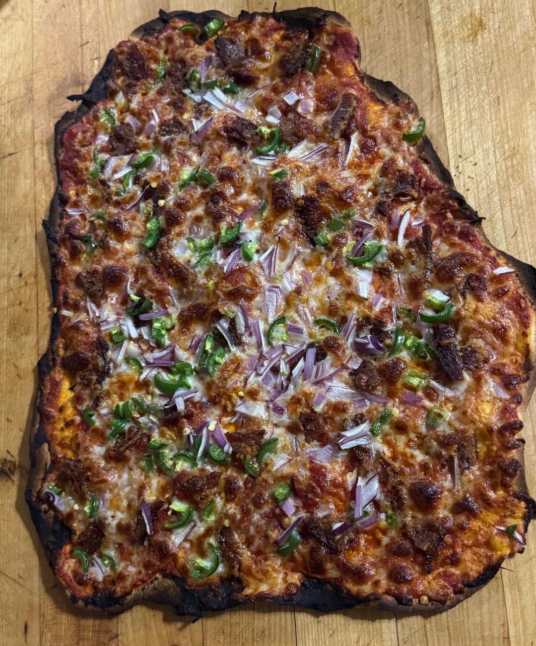 Chicago Tavern Pizza! One with bacon, red onions, and serranos, the other pepperoni, bacon, and Italian sausage. Cooked on a steel in a 500°F convection oven.by auto180sx NORMAL OVENpizza 7 Comments precariousIypoised 2 hours ago 10/10 will smash VeryStab1eGenius 2 hours ago Is it called a Chicago because it looks like it came out of the Chicago fire? ckepley80521 1 hour ago It’s not supposed to look like the shape of Chicago on a map. But A for effort. Would totally eat.https://preview.redd.it/0rqbdhstfrxg1.jpeg?width=316&format=pjpg&auto=webp&s=446b4d03d5b010d0aa35518684611af923a48615 MagazineDelicious151 1 hour ago A couple odd shaped taverns that look delicious Mobile_Aioli_6252 1 hour ago Shaped like Arkansas wes_harley02 1 hour ago Who is that staring at me in the 2nd pic. e_sin41 1 hour ago Shaped by your 5 year old?Write A CommentYou must be logged in to post a comment.