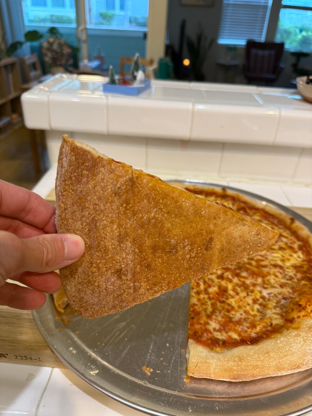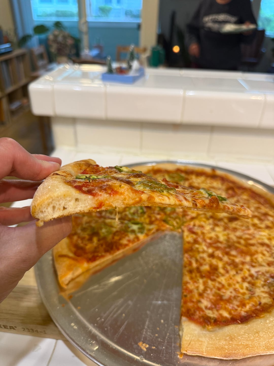 No flops, no burnt spots, with a balance of firm but slightly chewy dough and a good crust. Everything has been prepped by hand, including the dough (no mixer). I also make my own sauce from scratch.