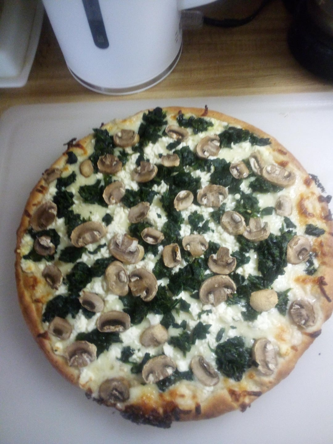 Made 2 pizzas.For the cheese/pepperoni I used cup & char [pepperoni.My](http://pepperoni.My) go-to sauce is Wegmans smooth marinara.The other is a spinach/mushroom with creamy garlic sauce.