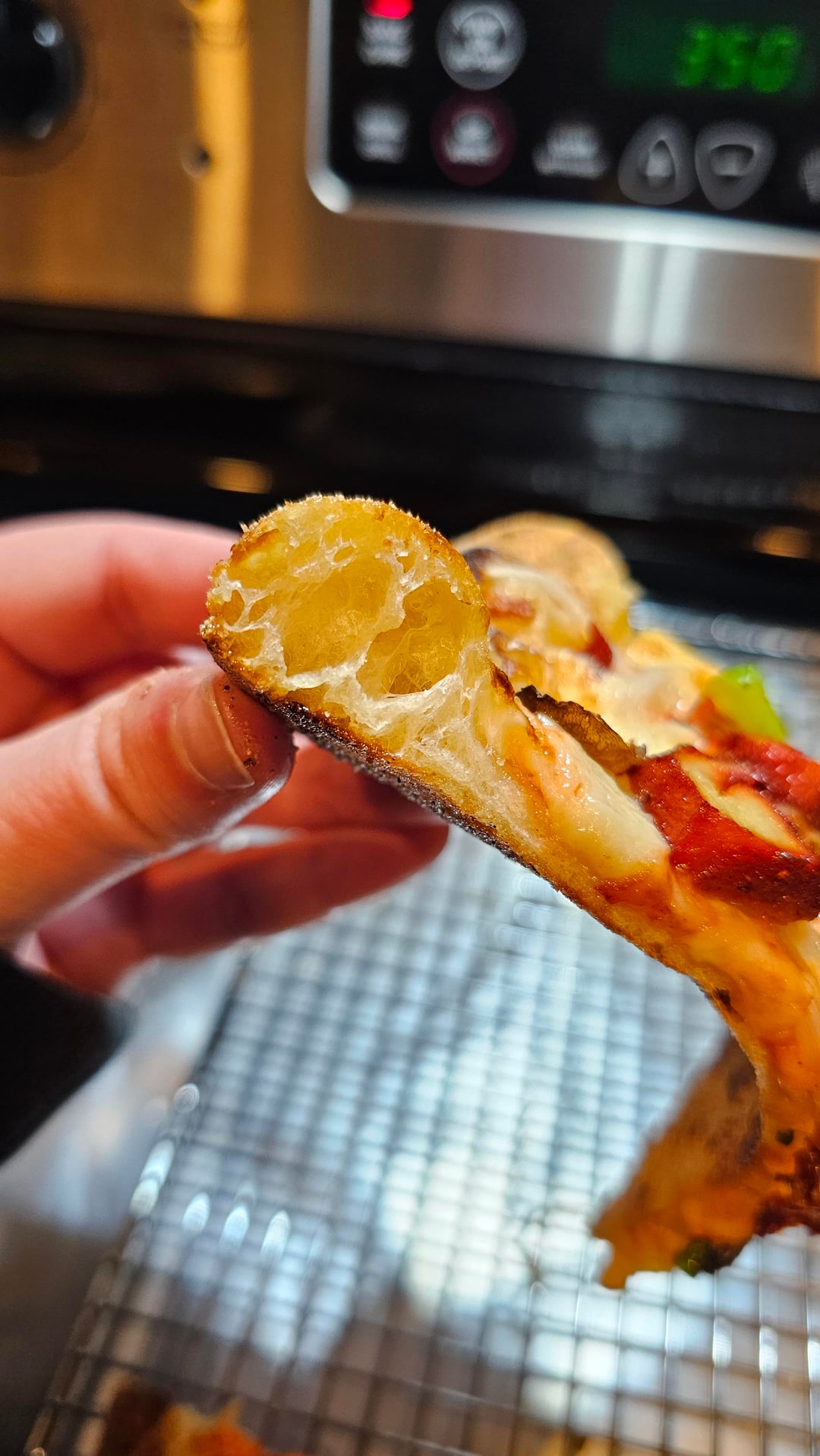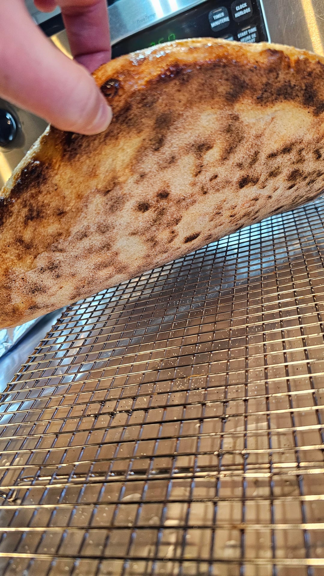 Dough was bulk proofed at room temp for 3 hrs, balled at stored at cold temp for 72hrs. Baked in a gozney arc xl, launched at 650°, cooked for 3 minutes with flame off and then flame on low for remainder of time.