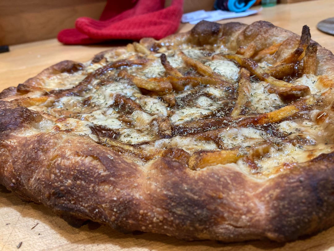 Beef bone broth instead of water/oil/salt in the dough 69% hydrationBeef Gravy is sauceCrispy shoestring fries seasoned with sage and paprikaCheese curdsAfter oven sage and thymeby StudPuffin_69 outdoor ovenpizza 1 Comment Malatesta721 33 minutes ago I want that.Write A CommentYou must be logged in to post a comment.