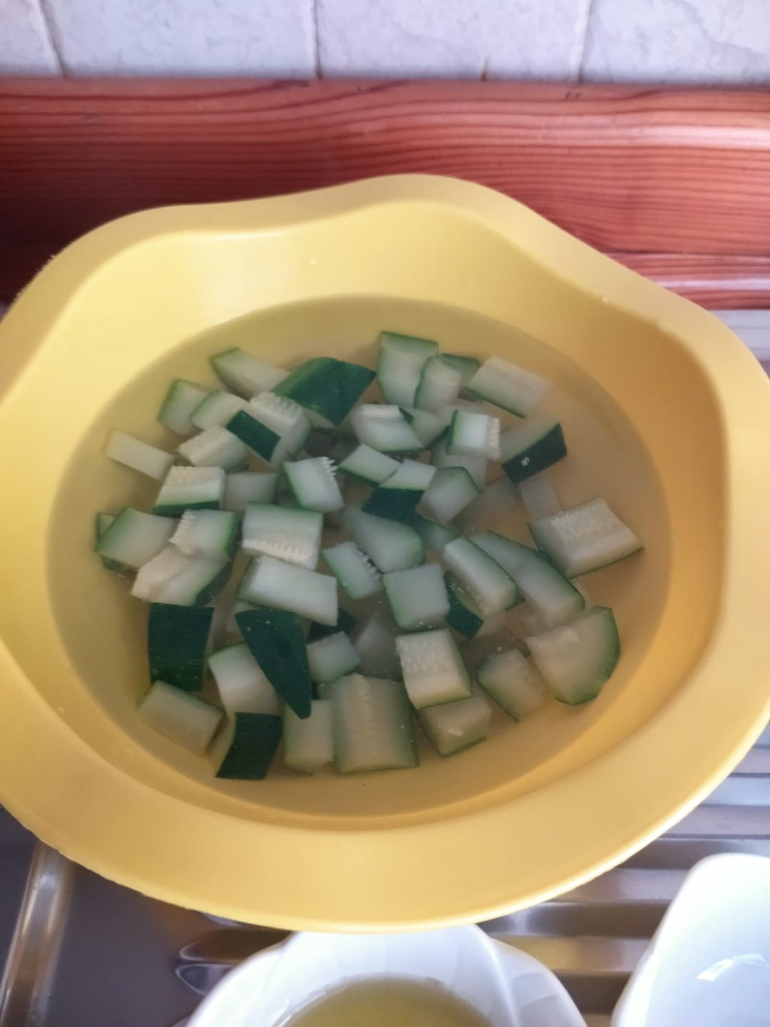 I chopped the remaining zucchini, blanched them in water for 5 minutes, and then immersed them in ice water.