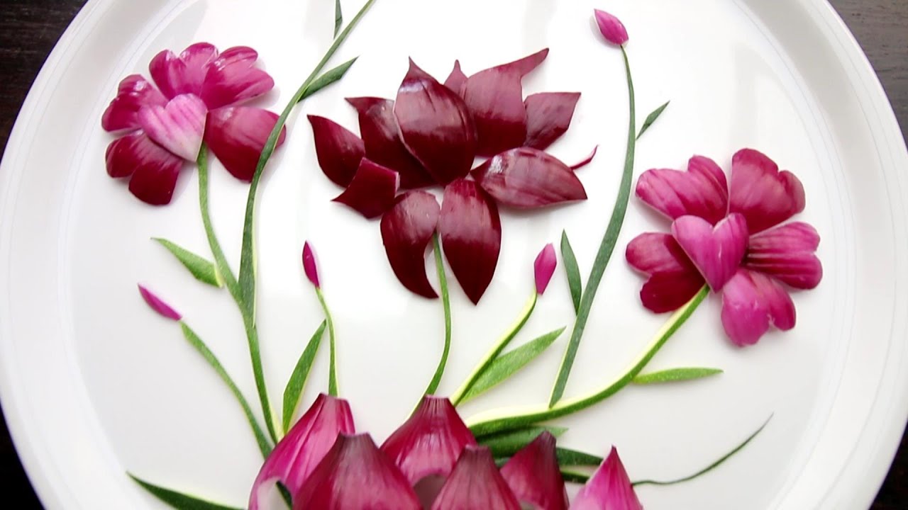 Vegetable Carving Garnish | Purple Onion Flower Decoration