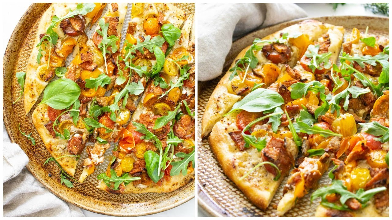 This Vegan BLT Pizza is layered with a rosemary cream sauce, heirloom cherry tomatoes, tempeh bacon and arugula. A fun twist on a classic. ******* GET THE …