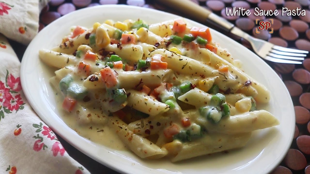 Penne vegetable white sauce pasta recipe – penne pasta coated with a creamy white sauce prepared using wheat flour along with vegetables and spices.