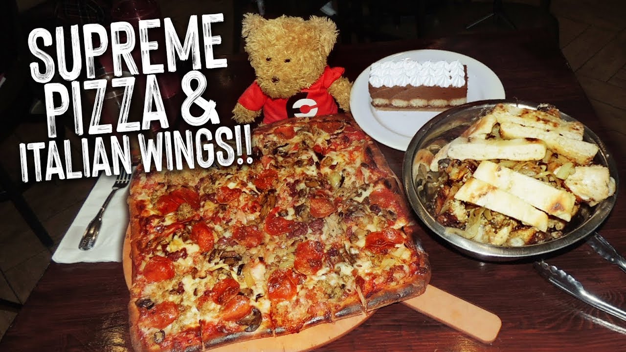 – For this challenge, you must finish a 14″ x 14″ thick-crust supreme pizza covered with a few meats, lots of healthy vegetables, and handfuls of fresh mozzarella cheese.