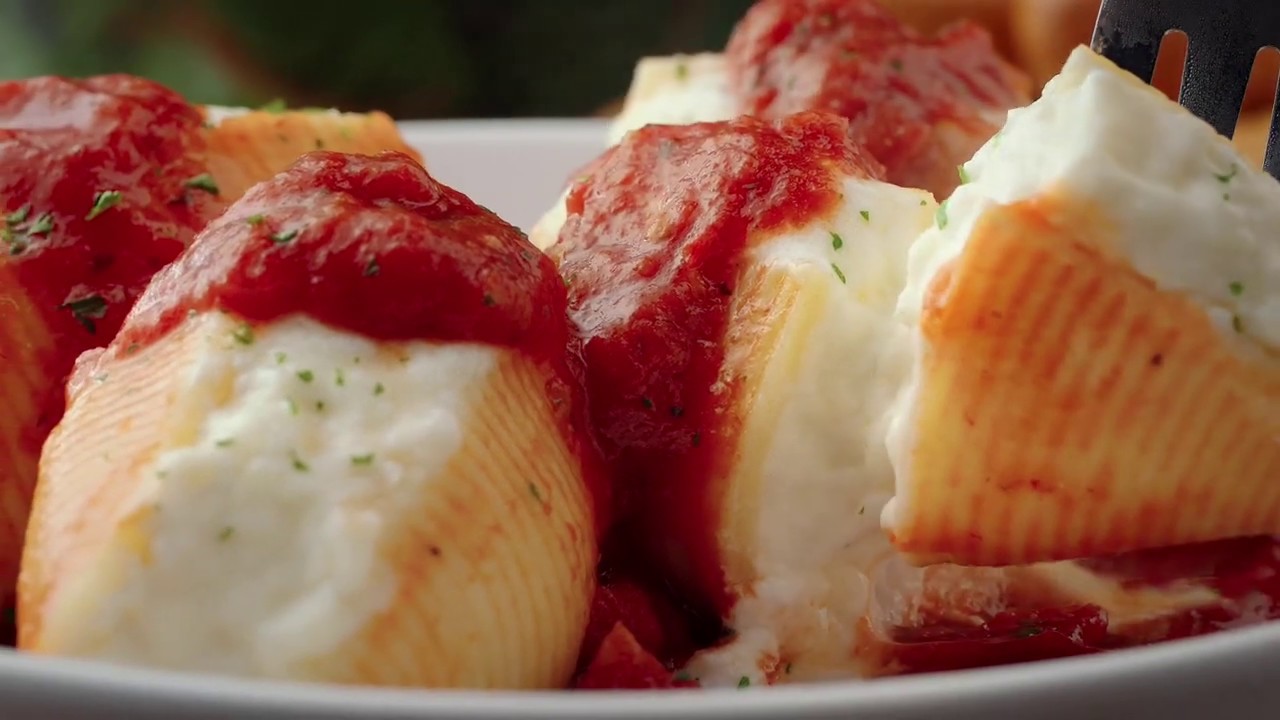 Hurry in for Never Ending Stuffed Pastas, starting at $11.99. Pick from three stuffed pastas—like our new Cheese Stuffed Shells—four sauces and four toppings. Plus unlimited soup or salad and breadsticks. It’s all never ending. Only for a limited time, at Olive Garden.