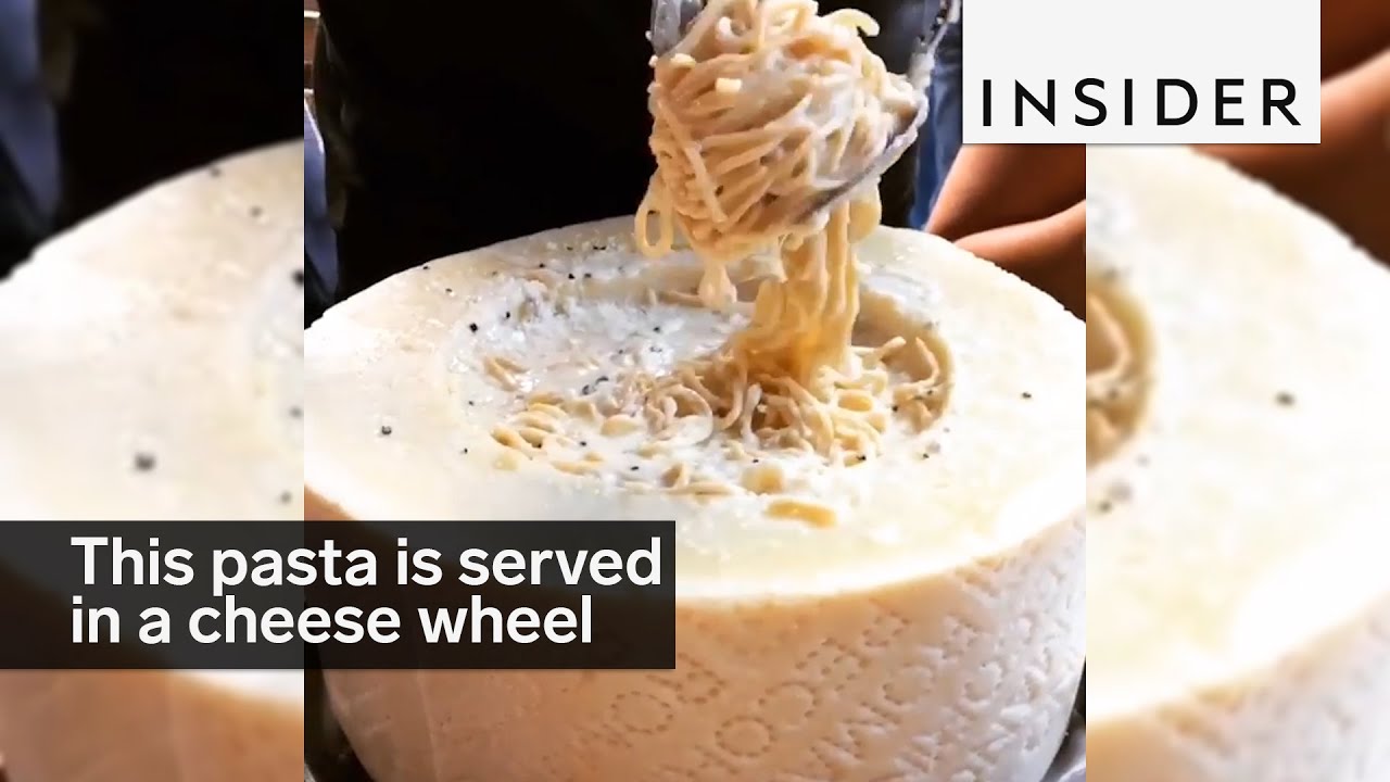 This is Cacio e Pepe in NYC. The traditional Roman pasta is prepared in a wheel of pecorino cheese. cheesecuisinediningDining in Italydining outDining Out in ItalyeatingEating in ItalyEating OutEating Out in ItalyFoodGiantitalianitalian cuisineItalian DiningItalyItaly CuisineItaly DiningPastaservedvideoVlogWheelYouTube