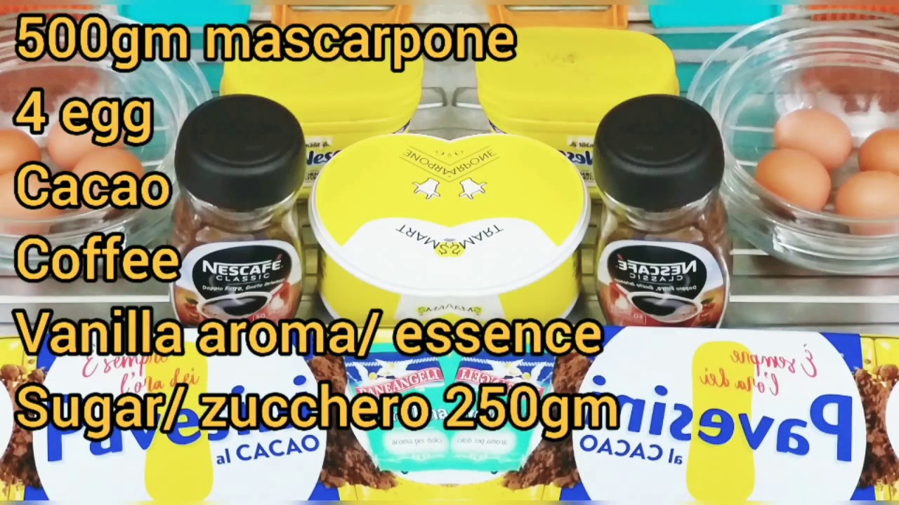 500gm mascarpone 250gm sugar 1 packet lady finger 4 eggs Vanilla essence Cacao/ coco powder Coffee camera phonedessertDolcefreeitalianItalian RecipesItalyItaly RecipesrecipesharingTiramisuuploadvideovideo phoneVlogYouTube
