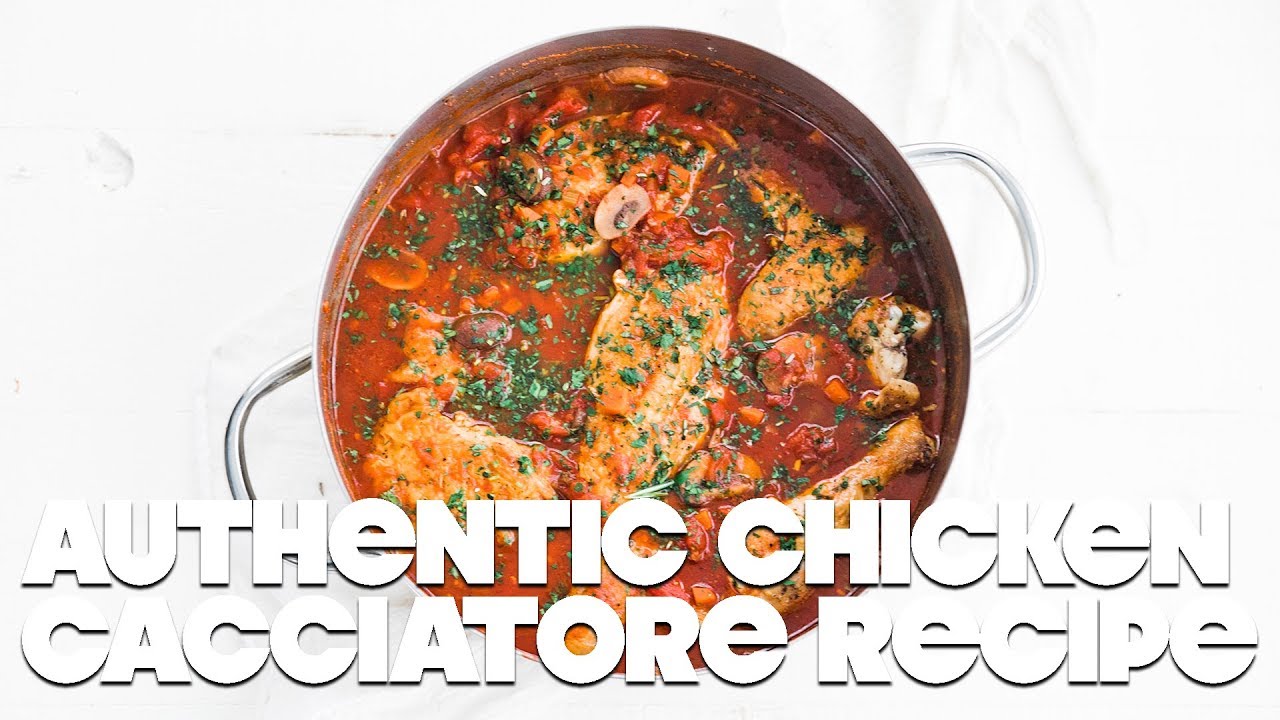 Authentic Chicken Cacciatore Recipe is a delicious braised chicken dish loaded with mushrooms and vegetables in a tomato and herb broth.