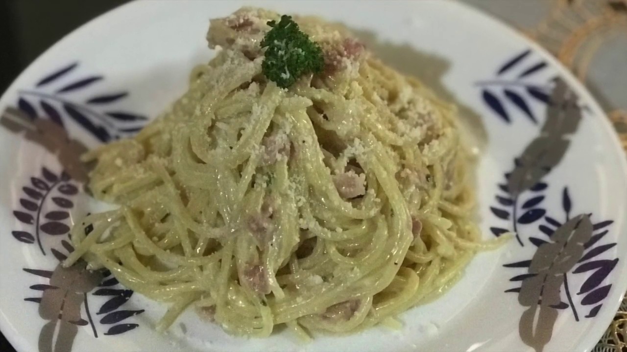 this serving is good for 3 to 4 personINGREDIENTS: 160grams spaghetti pasta 50grams salted bacon 1/2 cup fresh milk 1/2 cup cooking cream 2 tbs parmesan cheese 3tbs olive oil 1 egg yolk parsley salt and pepper camera phoneCarbonaracuisineFoodfreeitalianitalian cuisineitalian foodItalyItaly CuisineItaly FoodNativesharinguploadvideovideo phoneVlogYouTube