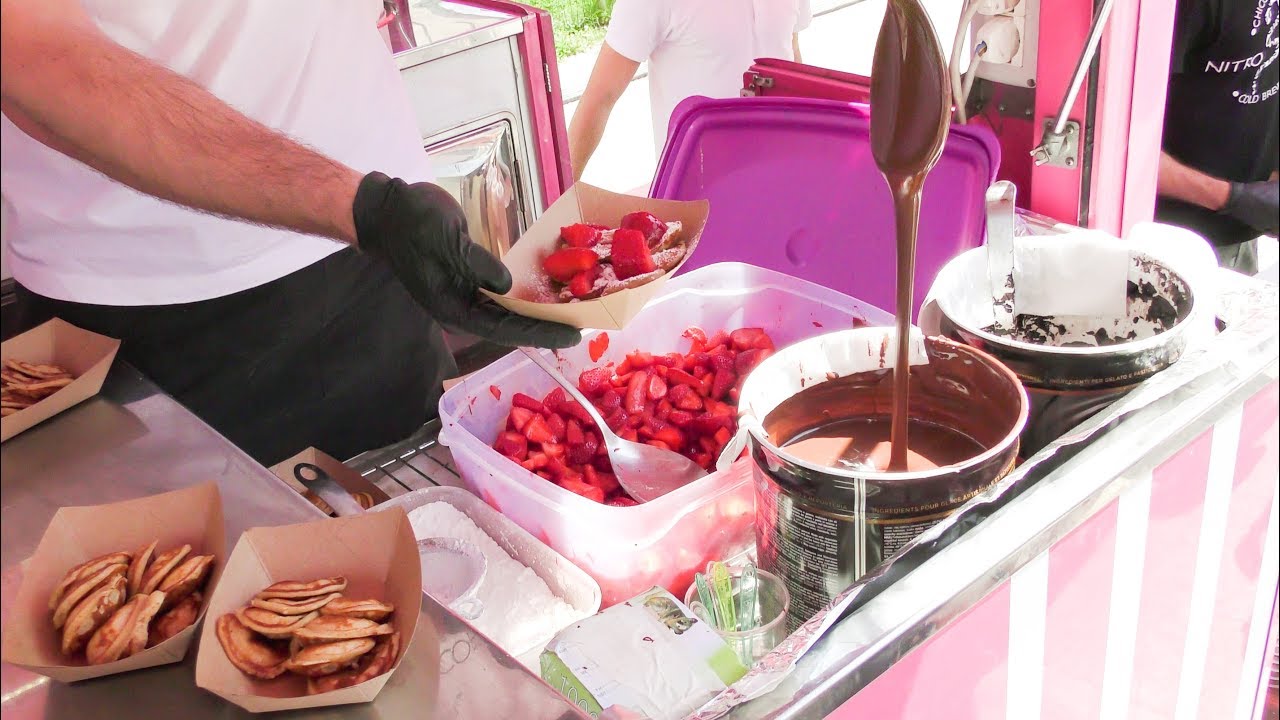 Poffertjes are a festive holiday treat in the Netherlands, popular at both summer festivals and Christmas markets. Mainly in the winter season temporary stands selling poffertjes are quite popular and sell portions containing one or two dozen of them. Usually the cook prepares them freshly for the customer. They are sold on a small cardboard (sometimes plastic) plate and come with a small disposable fork the size of a pastry fork.