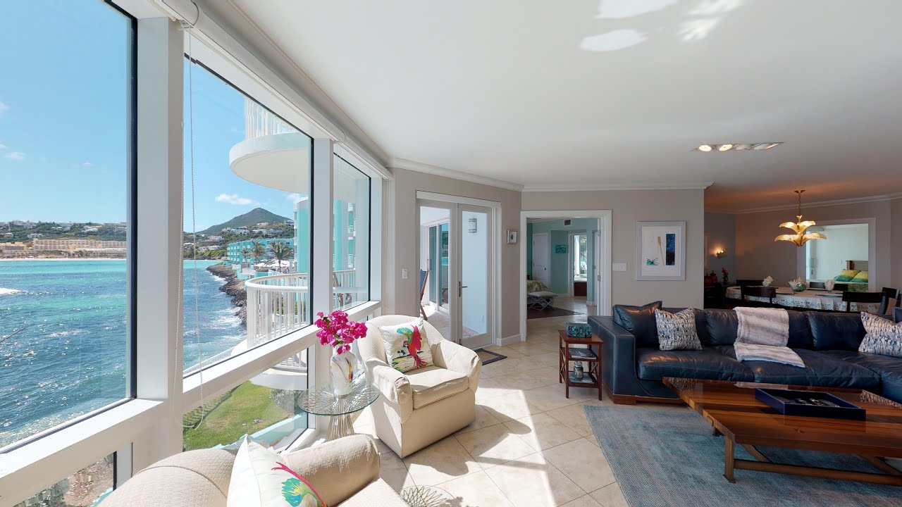 Lighthouse 2C is a luxury condominium located on the 2nd floor of The Lighthouse featuring beautiful views of the ocean and Dawn Beach. A comfortable modern contemporary floor plan is nestled between the island’s mile long Dawn Beach and Oyster Pond.