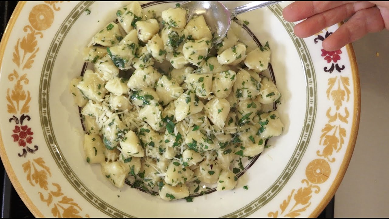 Gnocchi with garlic brown butter and parsley and Pecorino