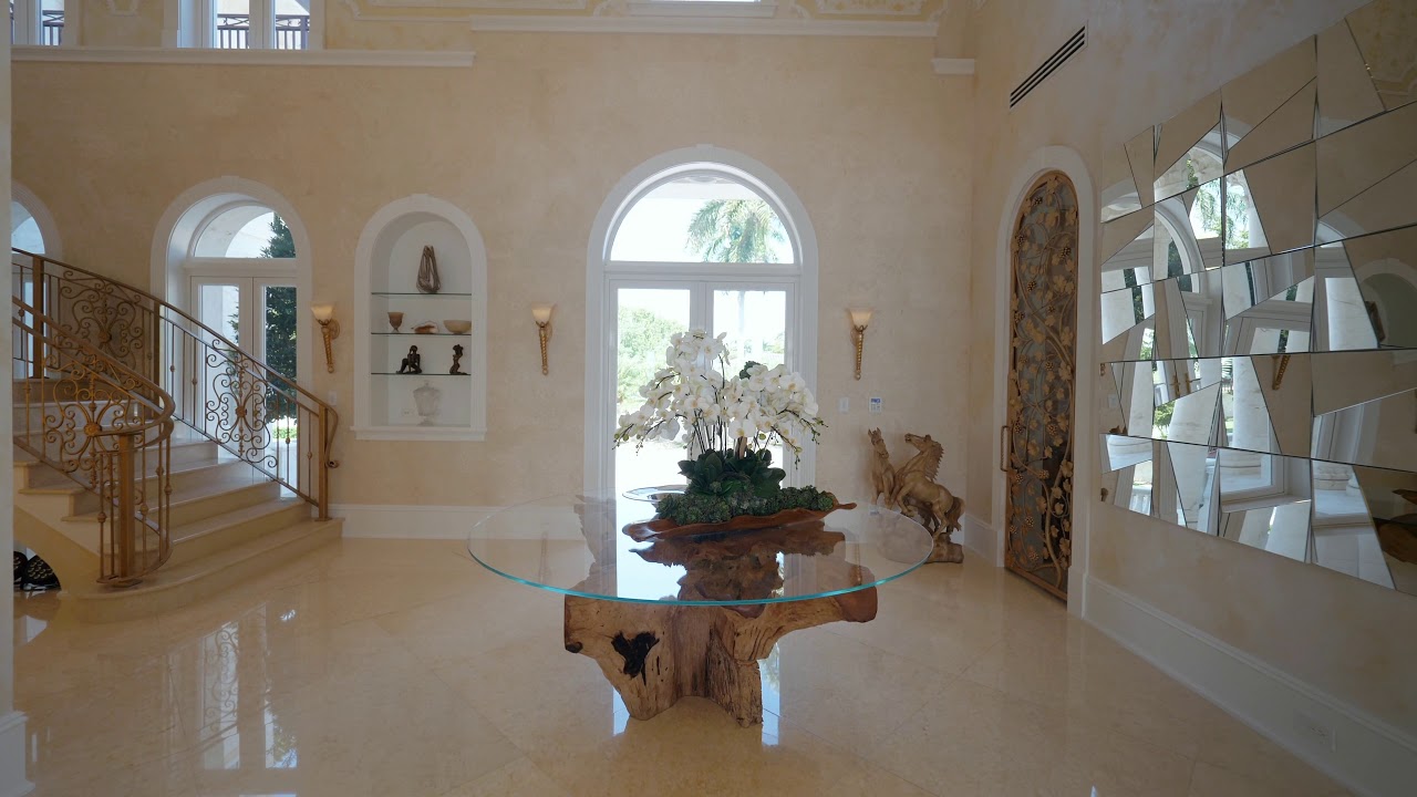 Two story Palatial/Neo-Classical Italian style villa designed by renowned architect Ramon Pacheco. This Dream home is 18,073 total square feet, with 14,443 adjusted living area, facing south on wide Gables Estates lagoon with marble veneer walls and custom carved stone elements throughout. 200 feet of new seawall with 140 foot dock. 2,888 square feet first floor covered terrace and 1,222 square feet second floor covered terrace area. Huge Master suite with his/her bath with huge walk in closets, 5 additional En suite bedrooms and 2 bedroom staff quarter. Exquisite Venetian Plaster with carved plaster moldings throughout, 2 story foyer with crystal chandeliers. Custom crafted kitchen with butlers pantry, 600 bottle custom wood wine cellar. Library/Office with fireplace, private side entry. Huge Gym with full bath.